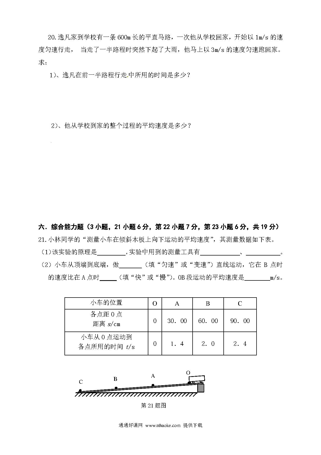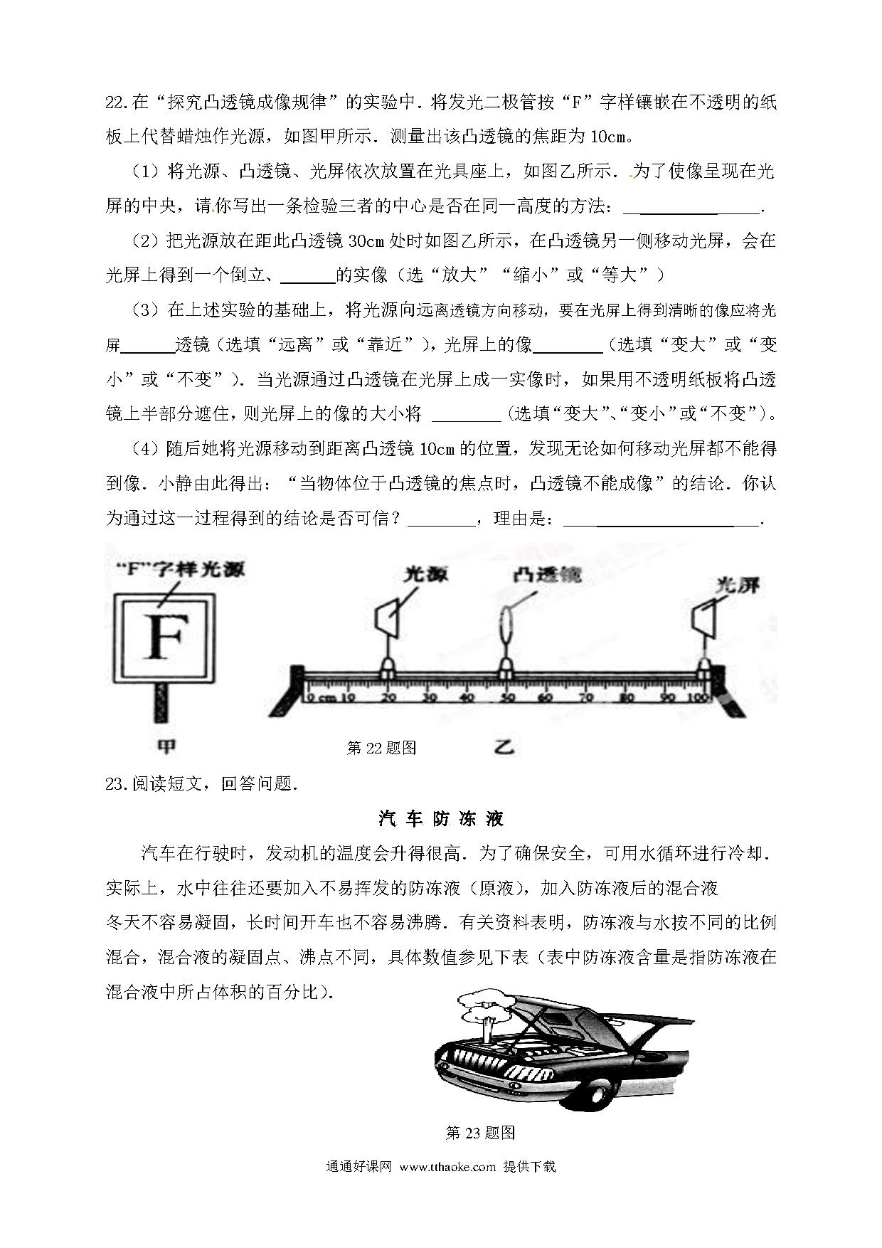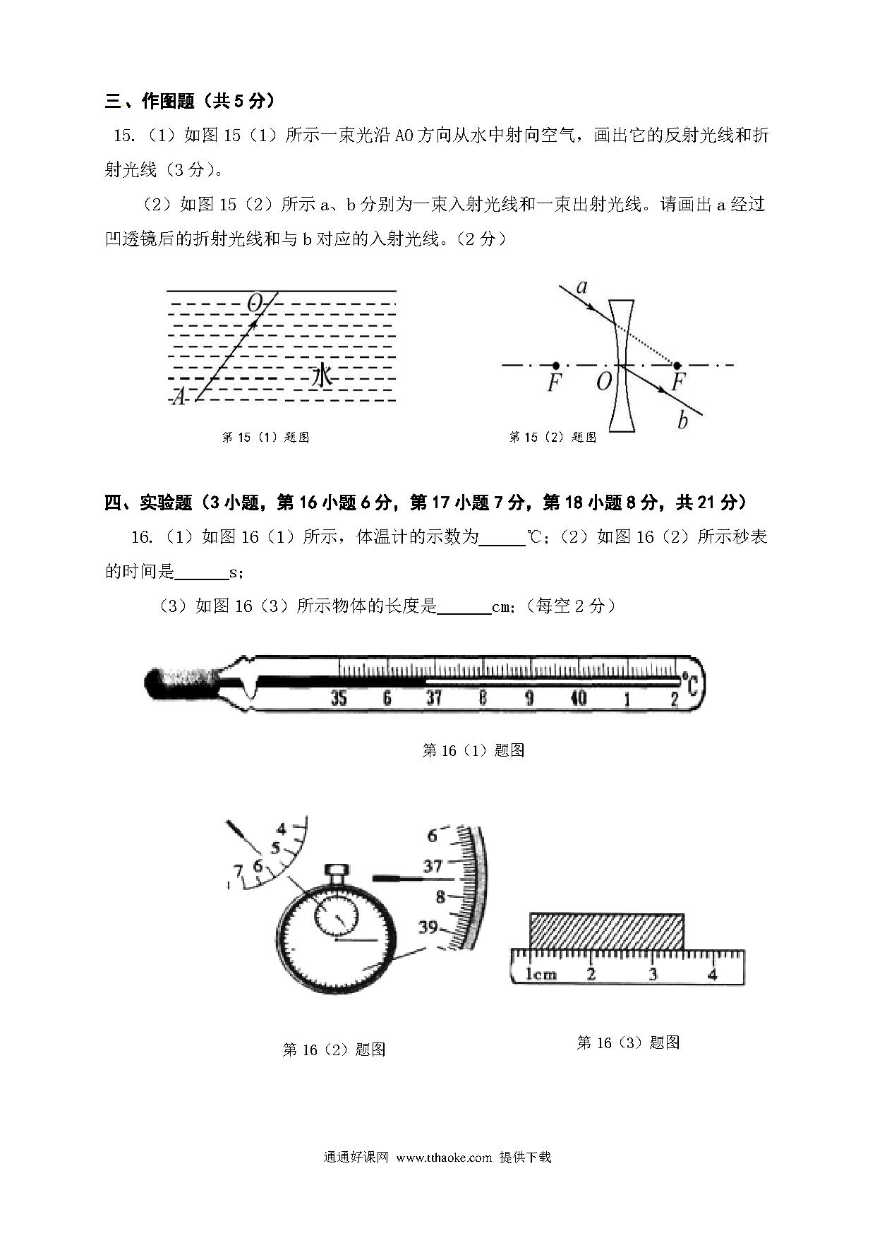 重庆江津联考2016-2017学年度下期初二物理期中试卷及答案