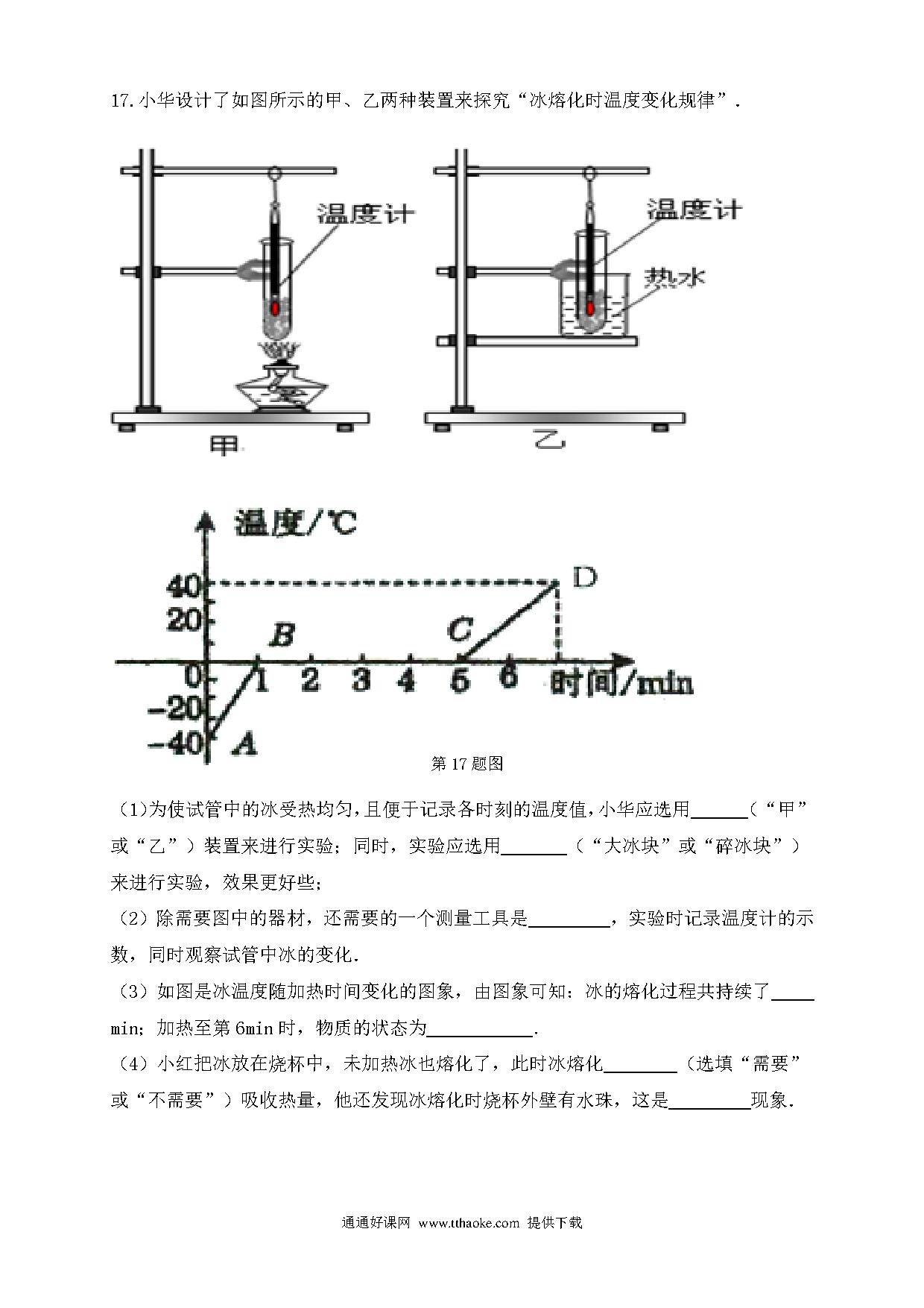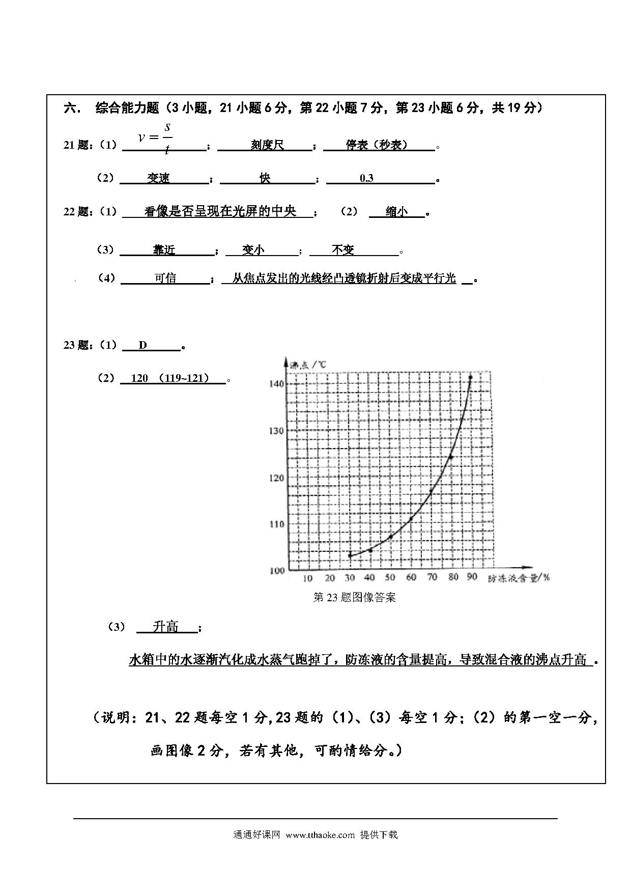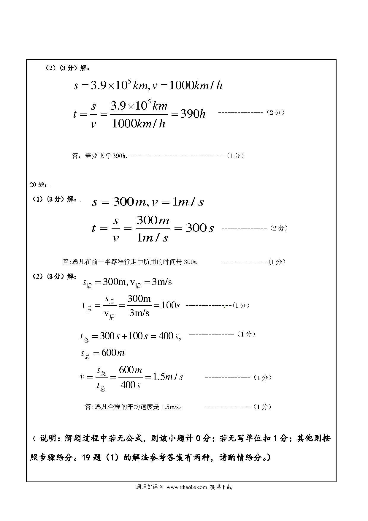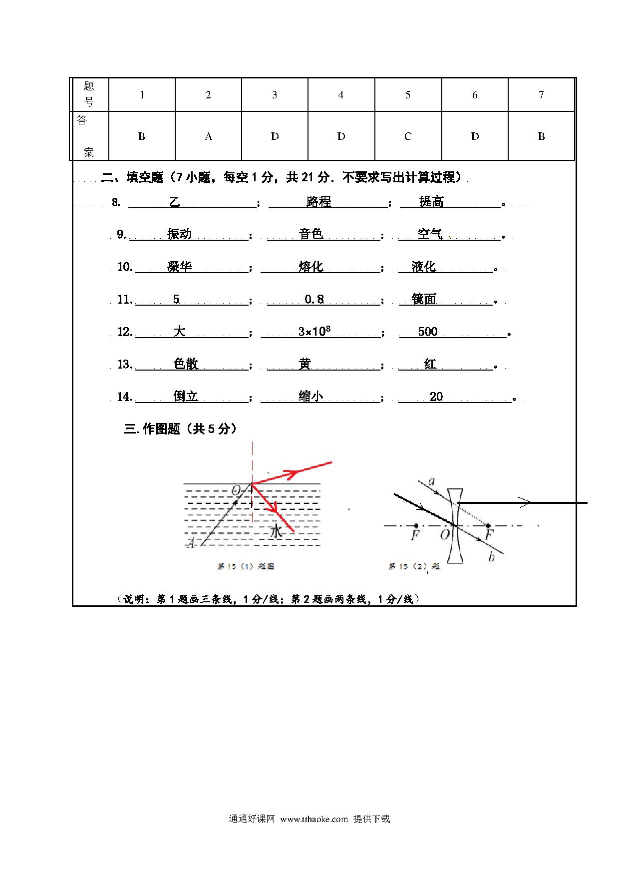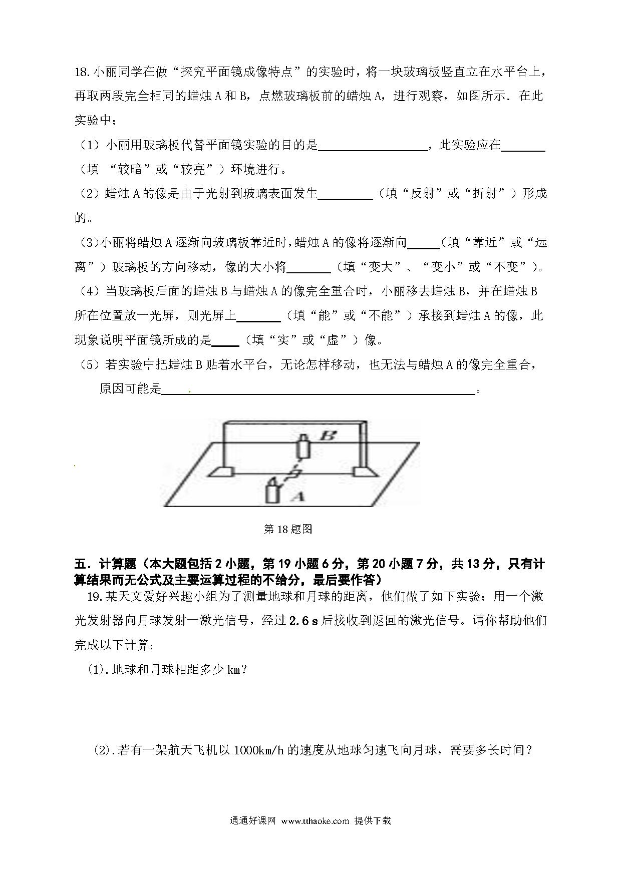 文安县2016-2017学年第二学期八年级物理期中试卷及答案