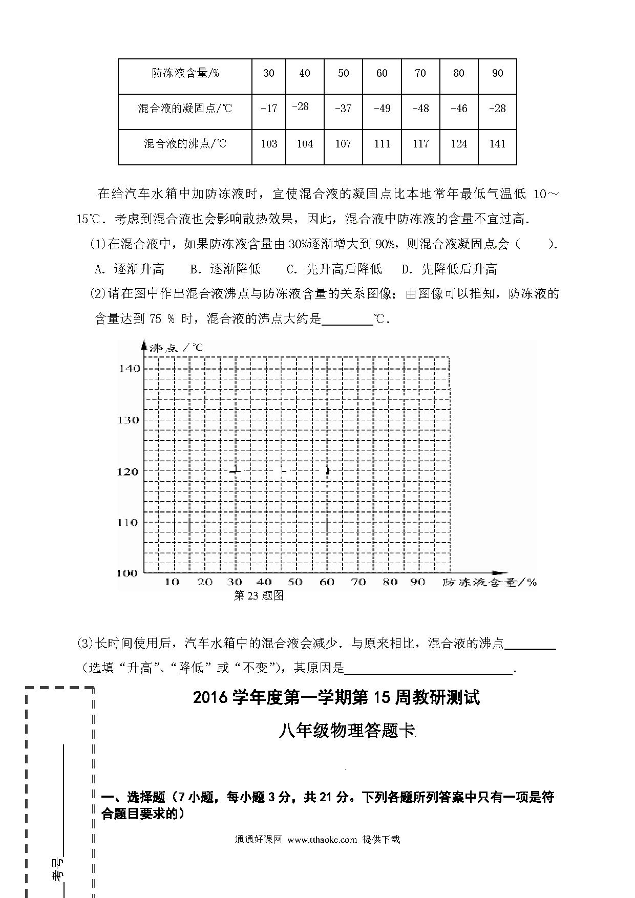 佛山市顺德区2016年初二物理12月月考试题及答案