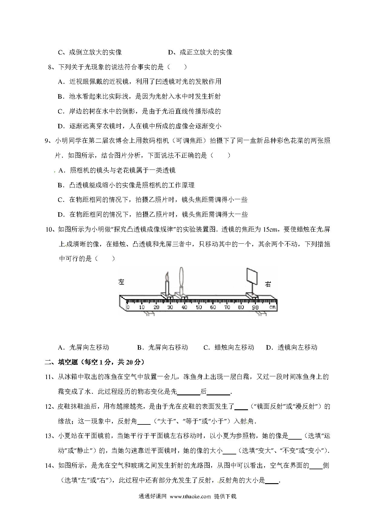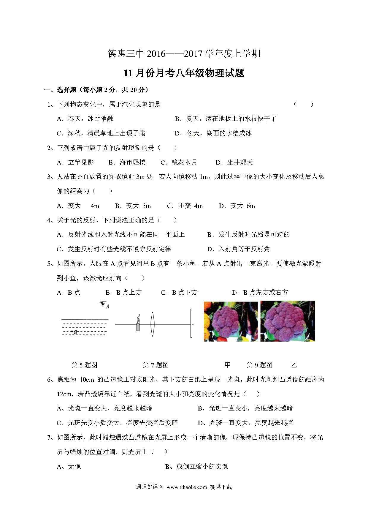 德惠三中2016年八年级物理11月月考试题及答案.pdf