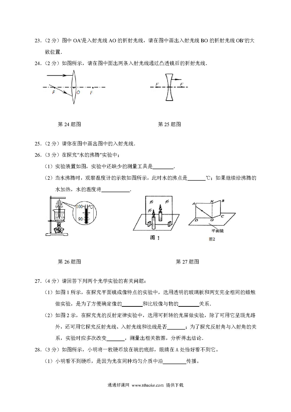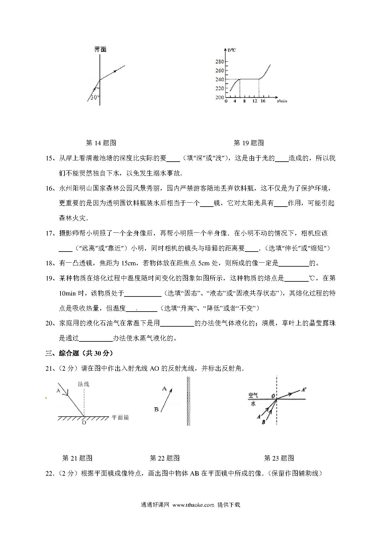 文安县2016-2017学年第二学期八年级物理期中试卷及答案
