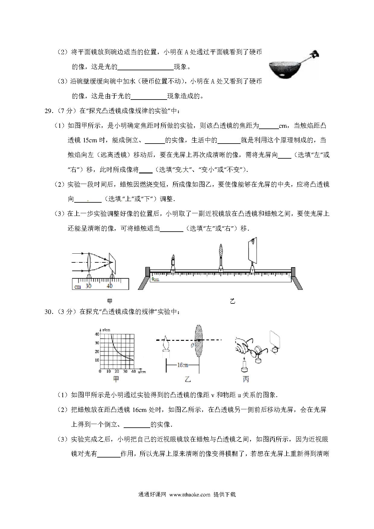 重庆江津联考2016-2017学年度下期初二物理期中试卷及答案