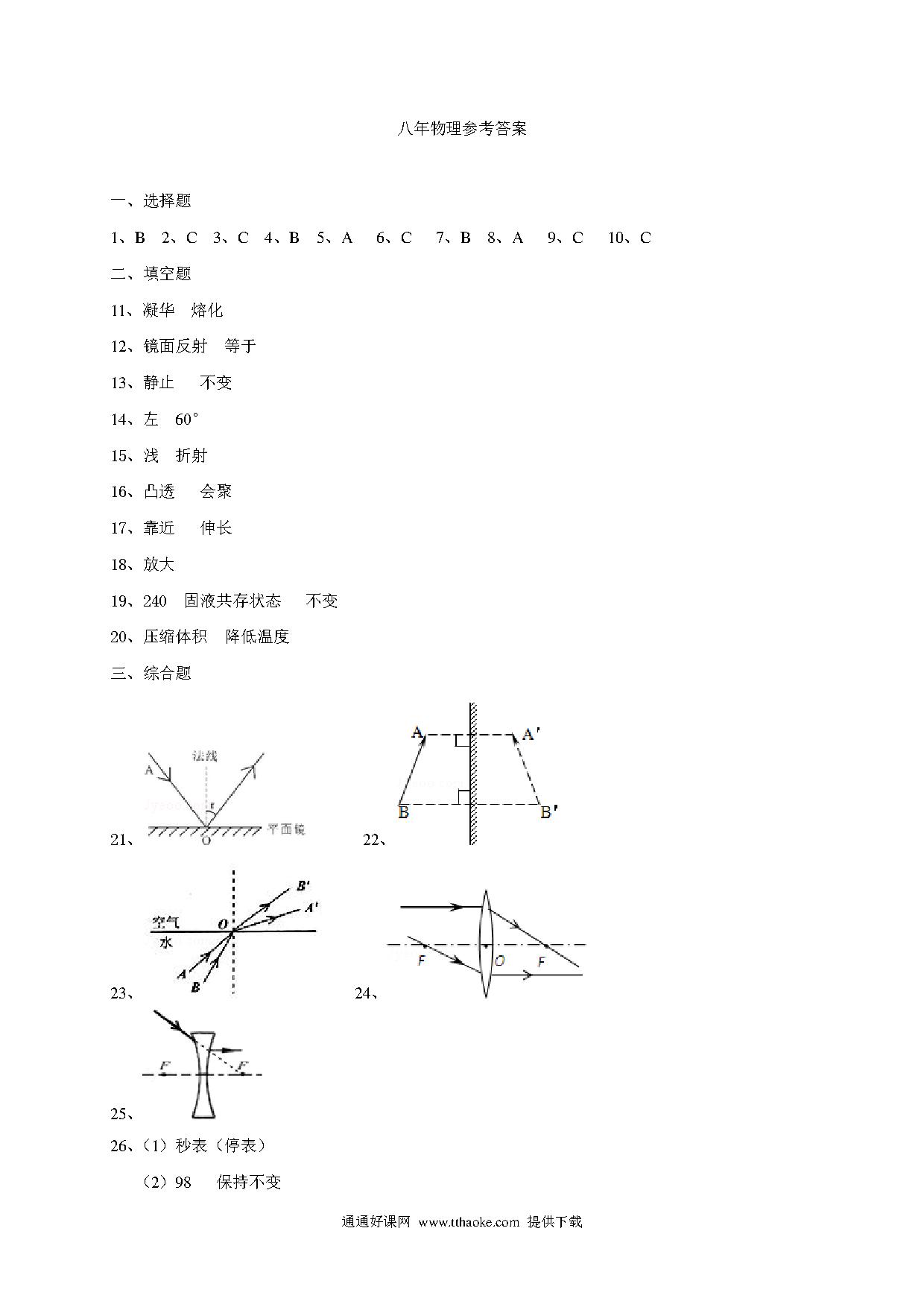 济南市槐荫区2017年4月八年级物理期中试题及答案