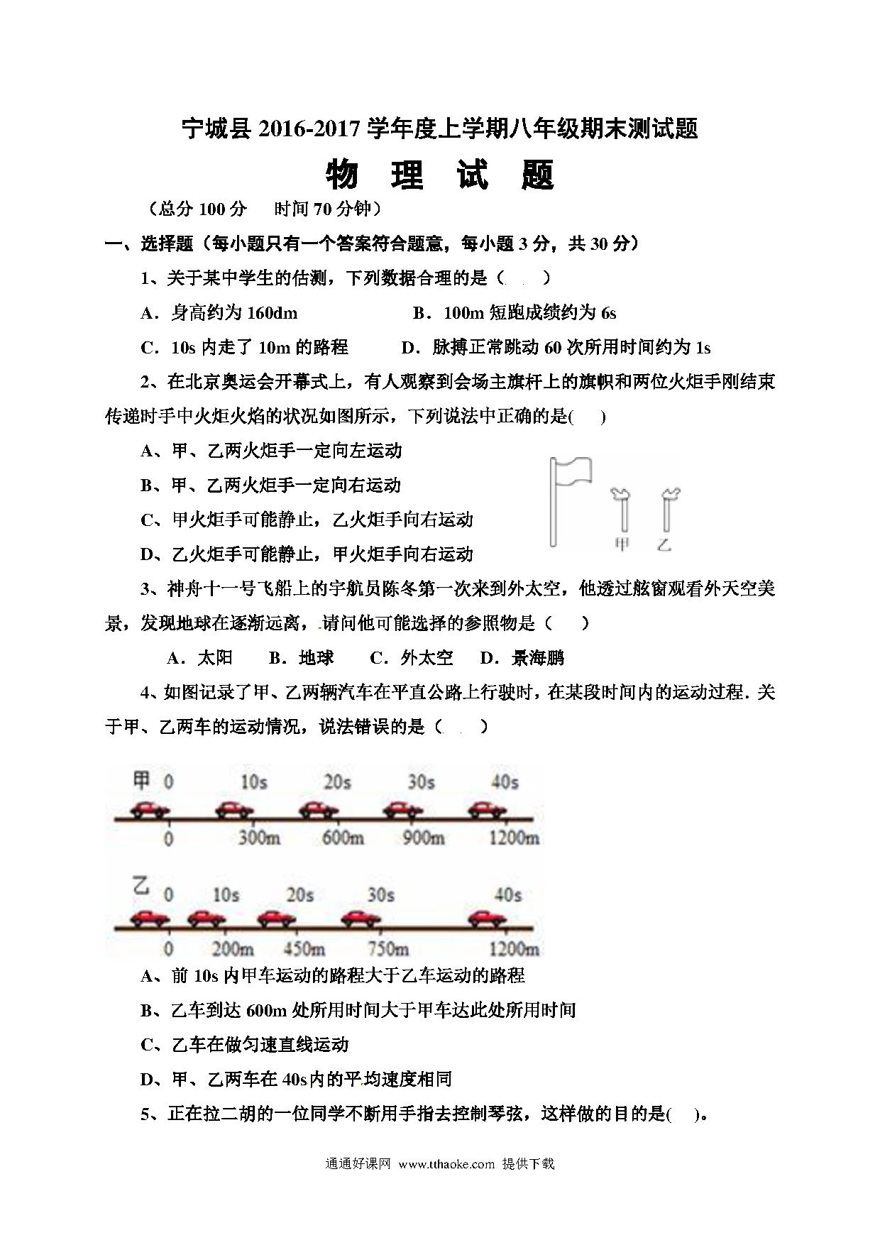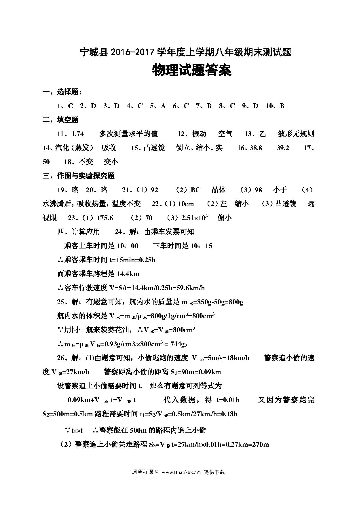 赤峰市宁城县2016-2017年八年级上学期物理期末试卷有答案.pdf