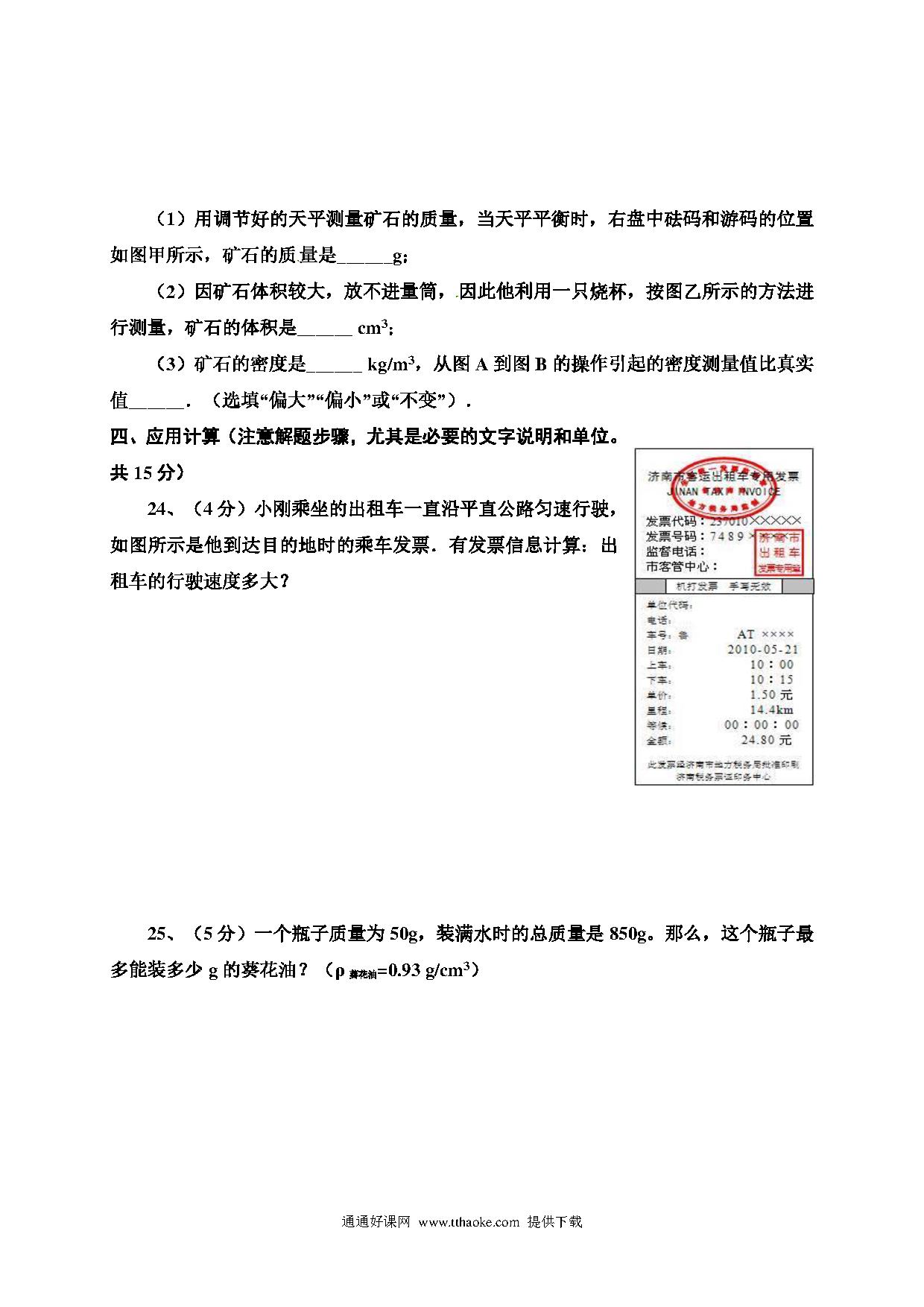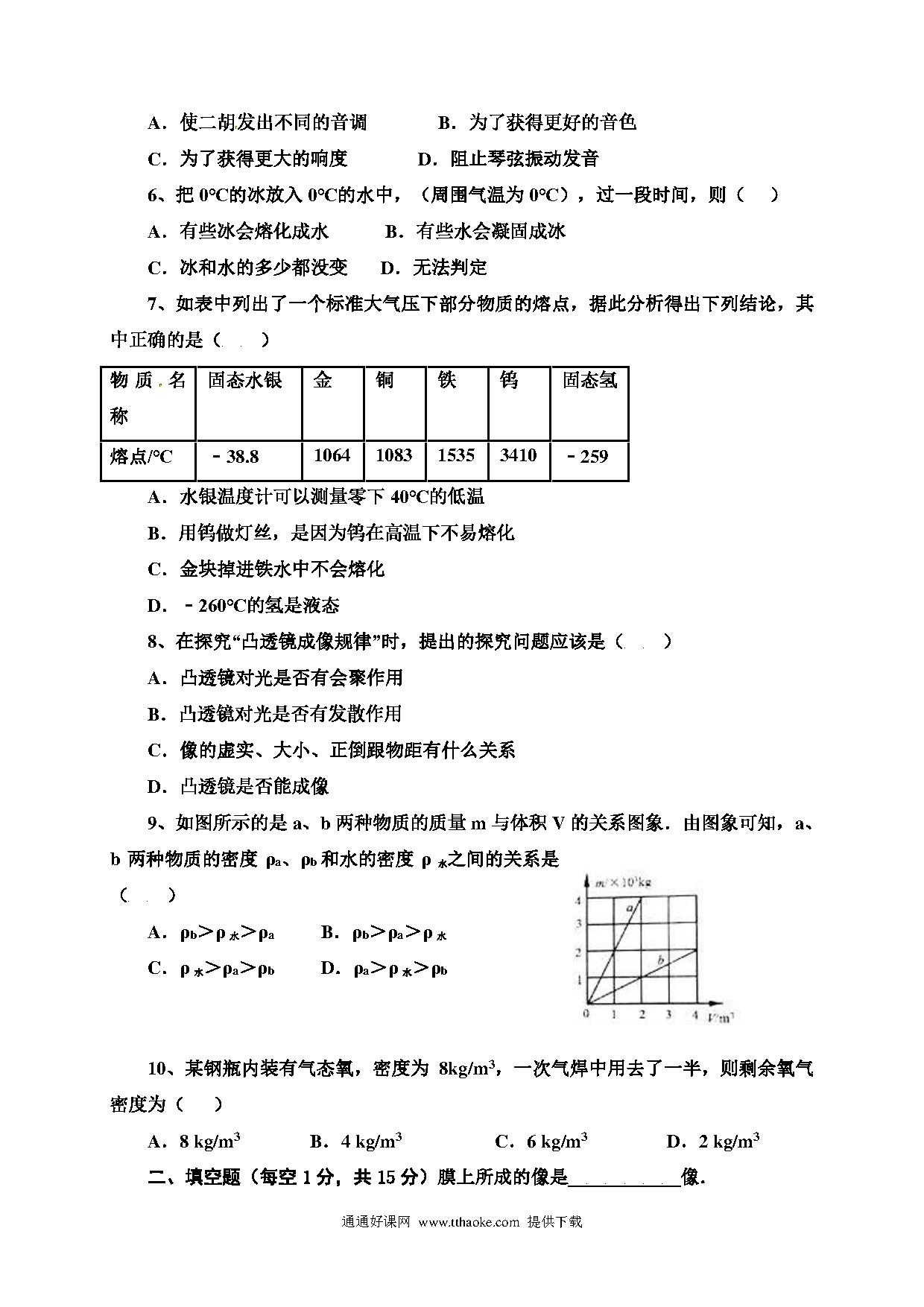 厦门市同安区016-2017学年八年级第二学期物理期中试卷及答案