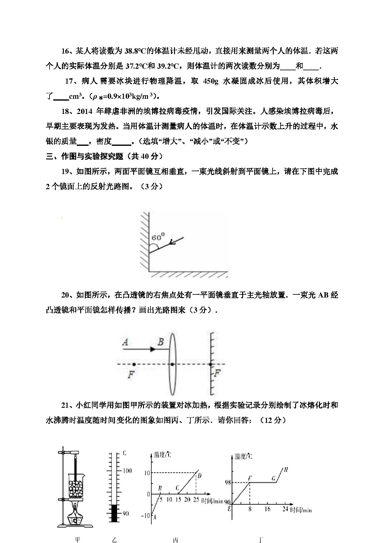 文安县2016-2017学年第二学期八年级物理期中试卷及答案