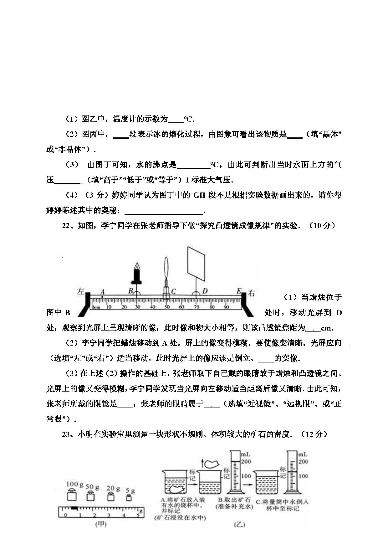 重庆江津联考2016-2017学年度下期初二物理期中试卷及答案
