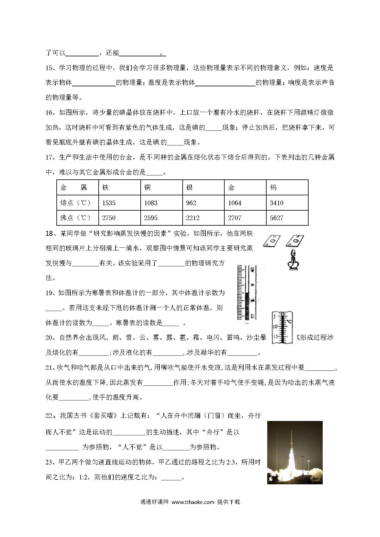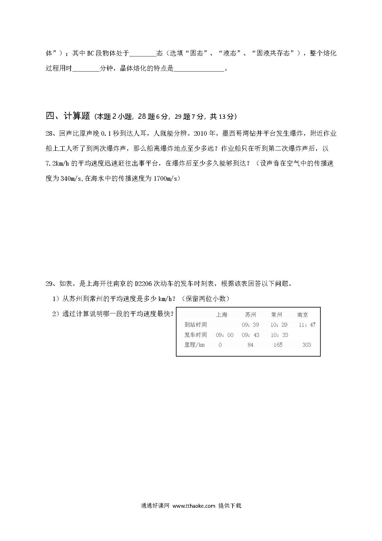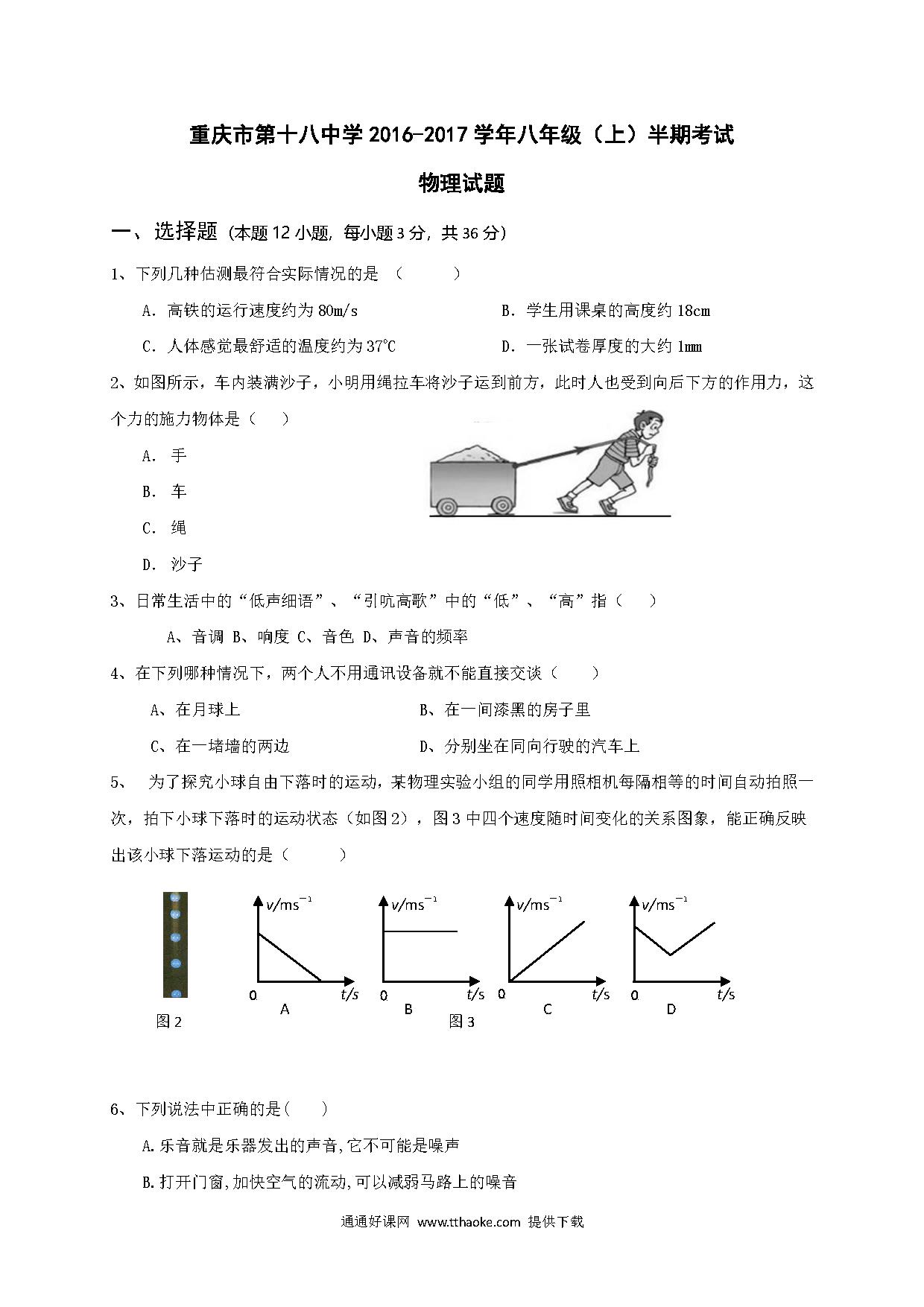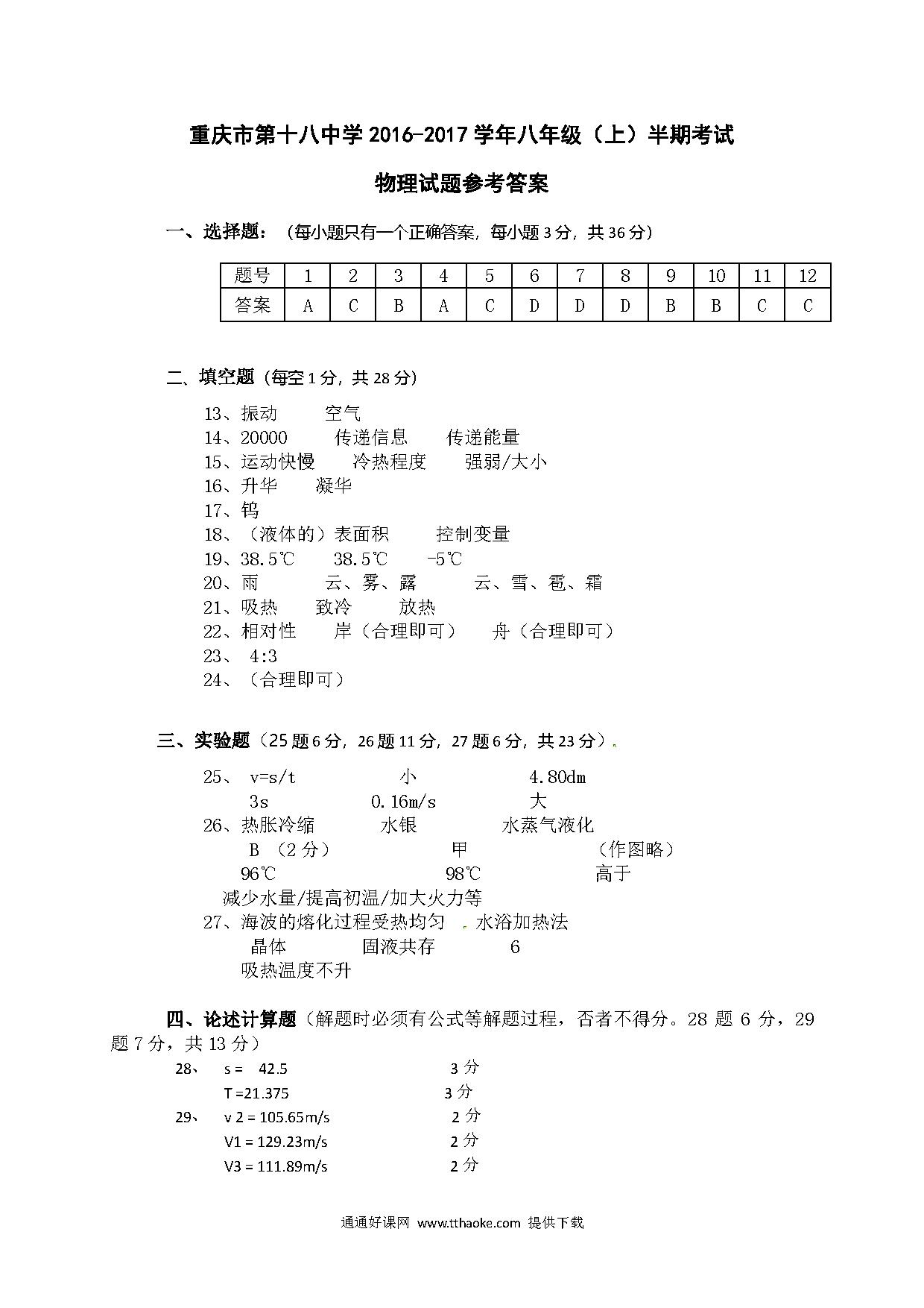 百强校重庆十八中2016-2017学年第一学期初二物理期中试题及答案.pdf