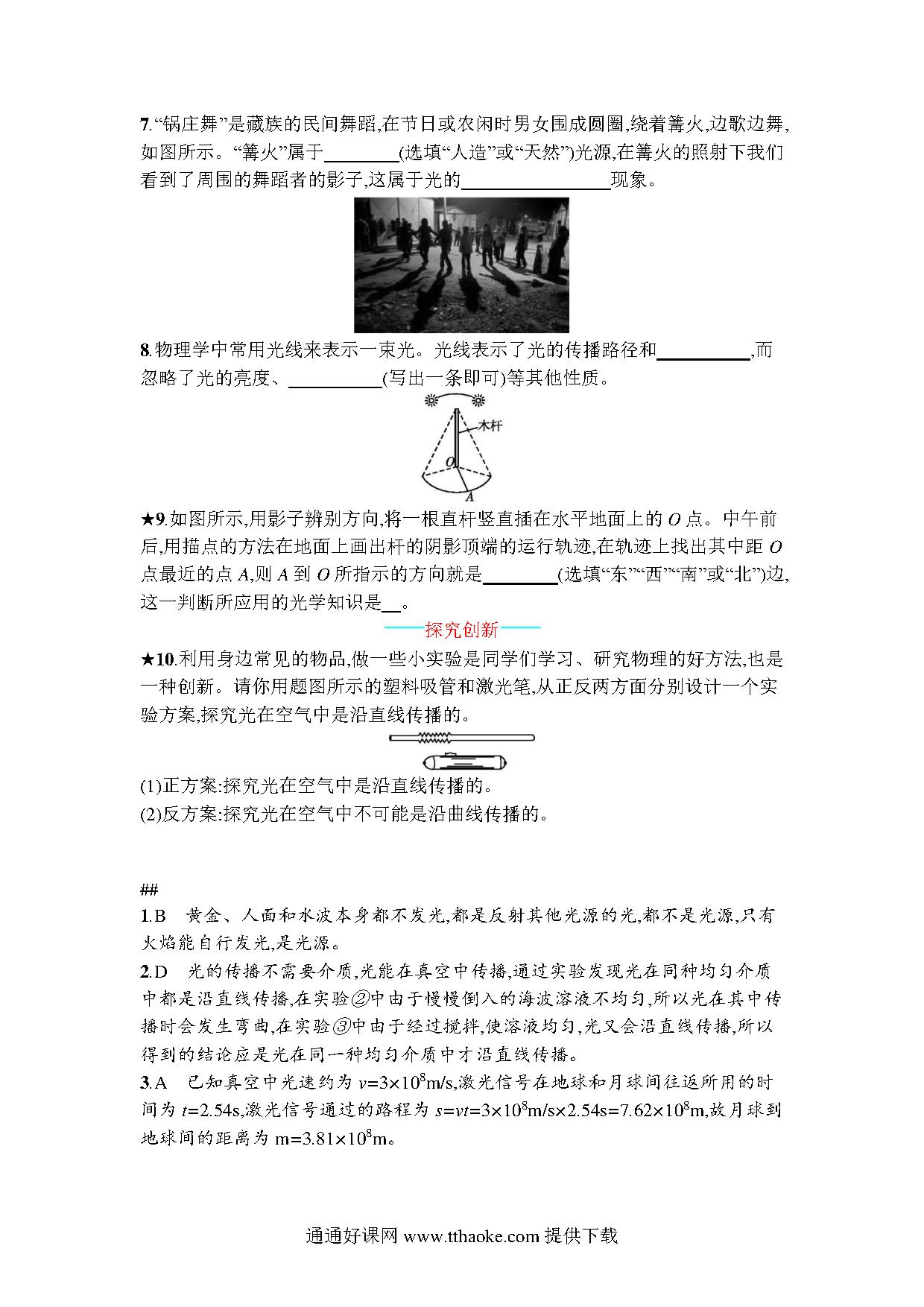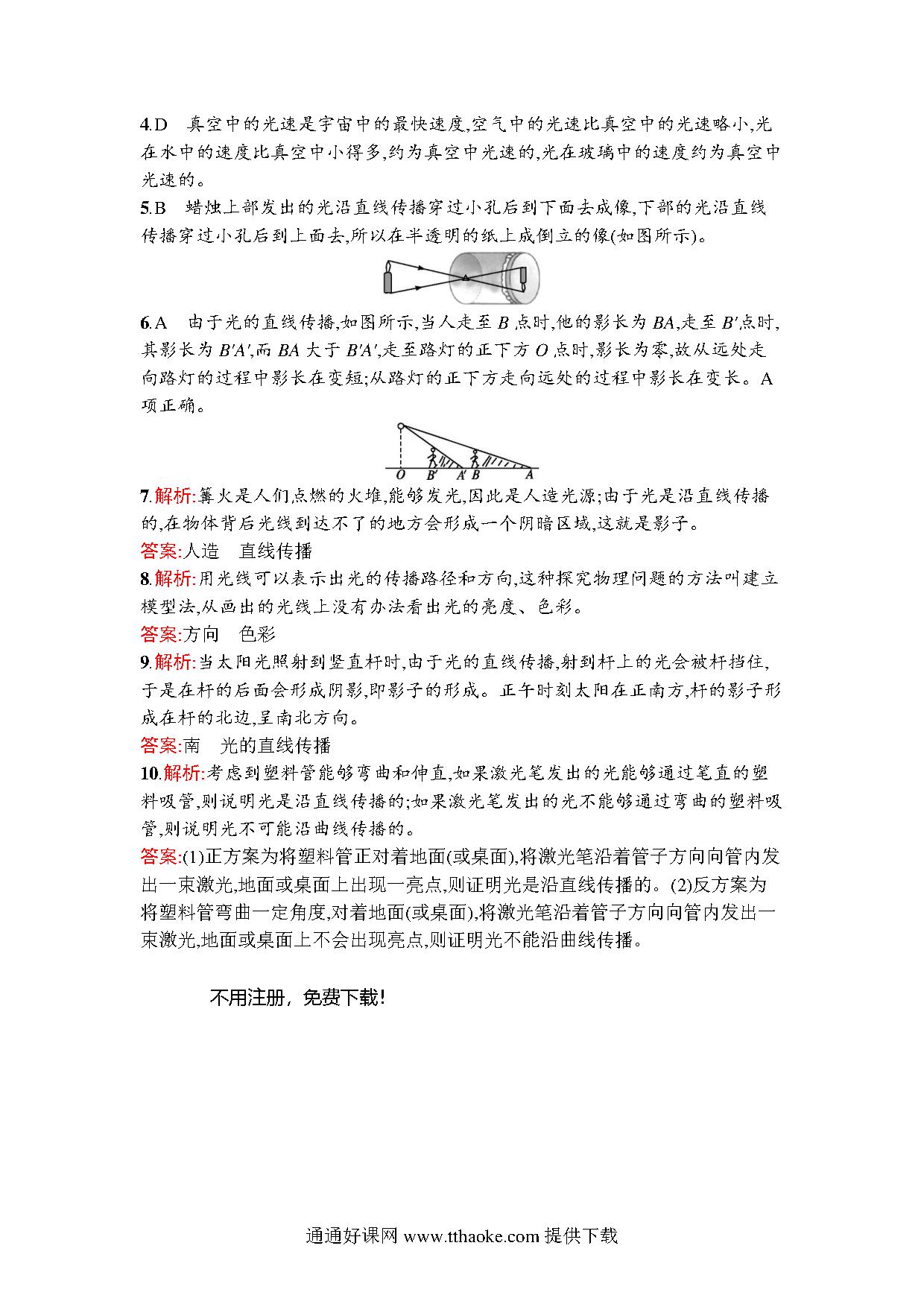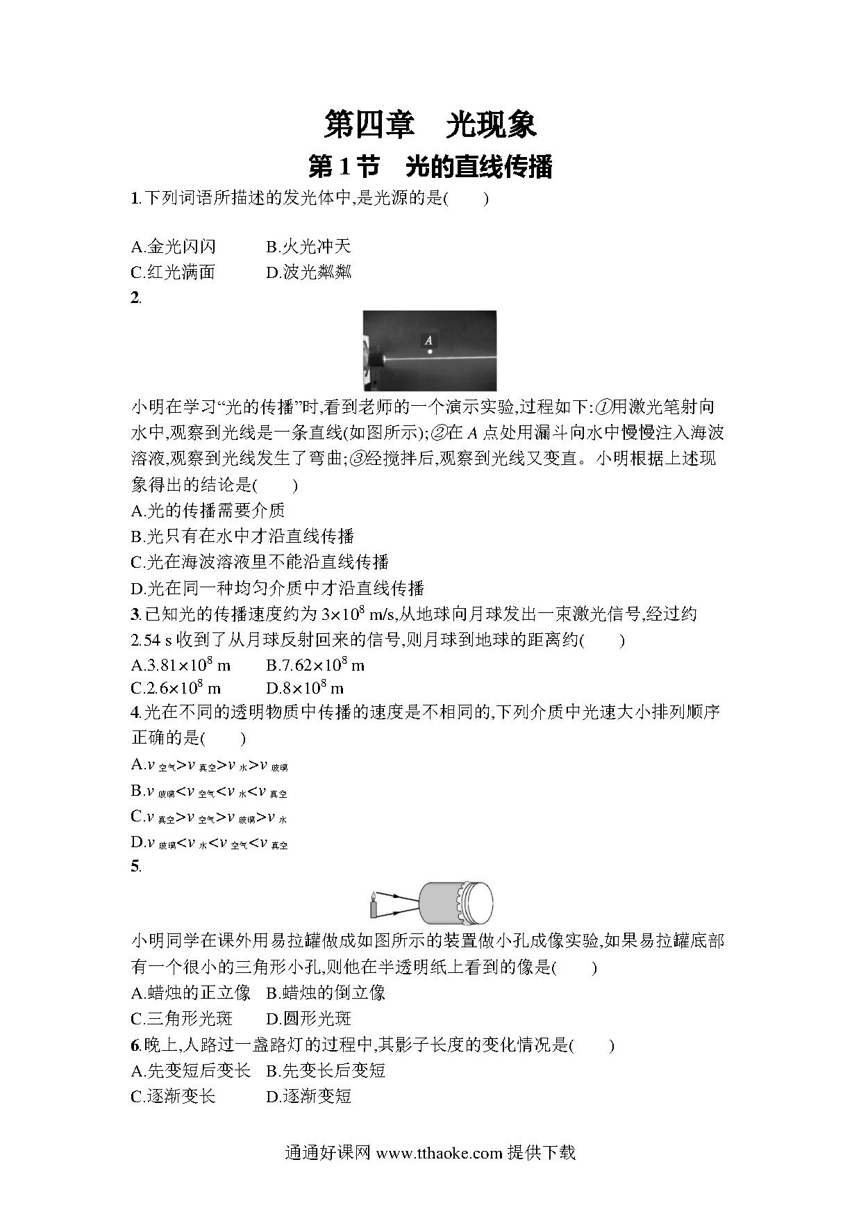 2016年人教版八年级物理上册第四章光现象课时练习题及答案