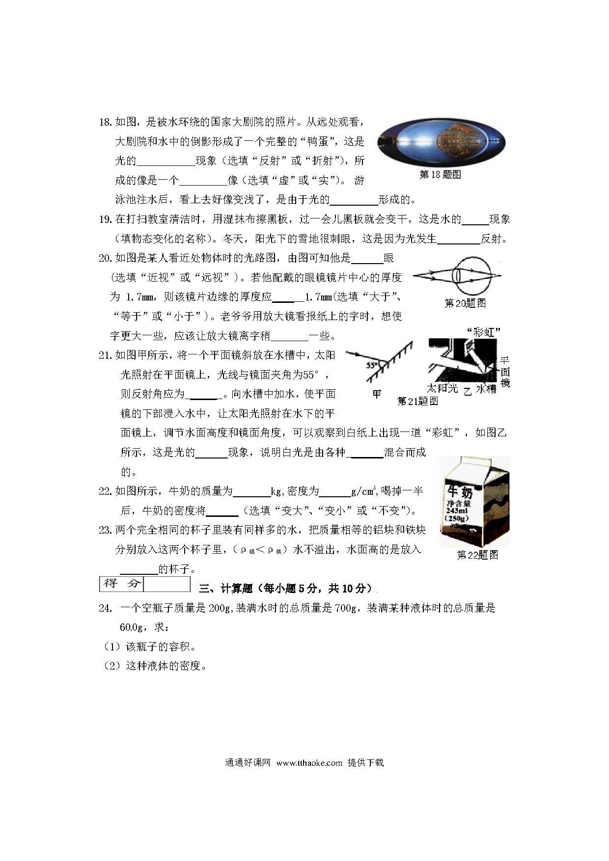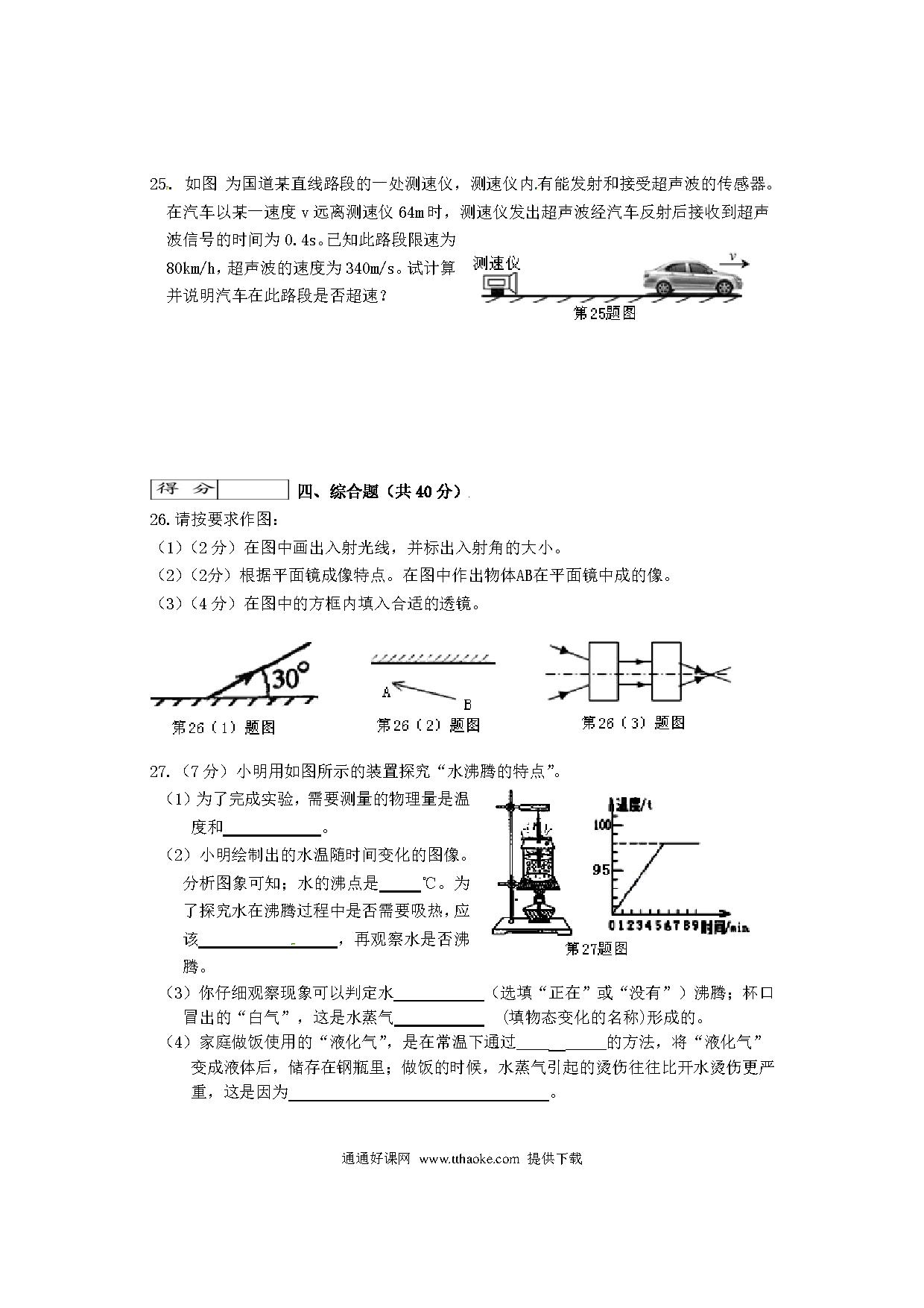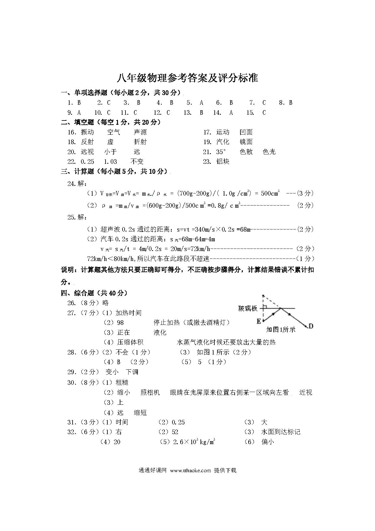 文安县2016-2017学年第二学期八年级物理期中试卷及答案