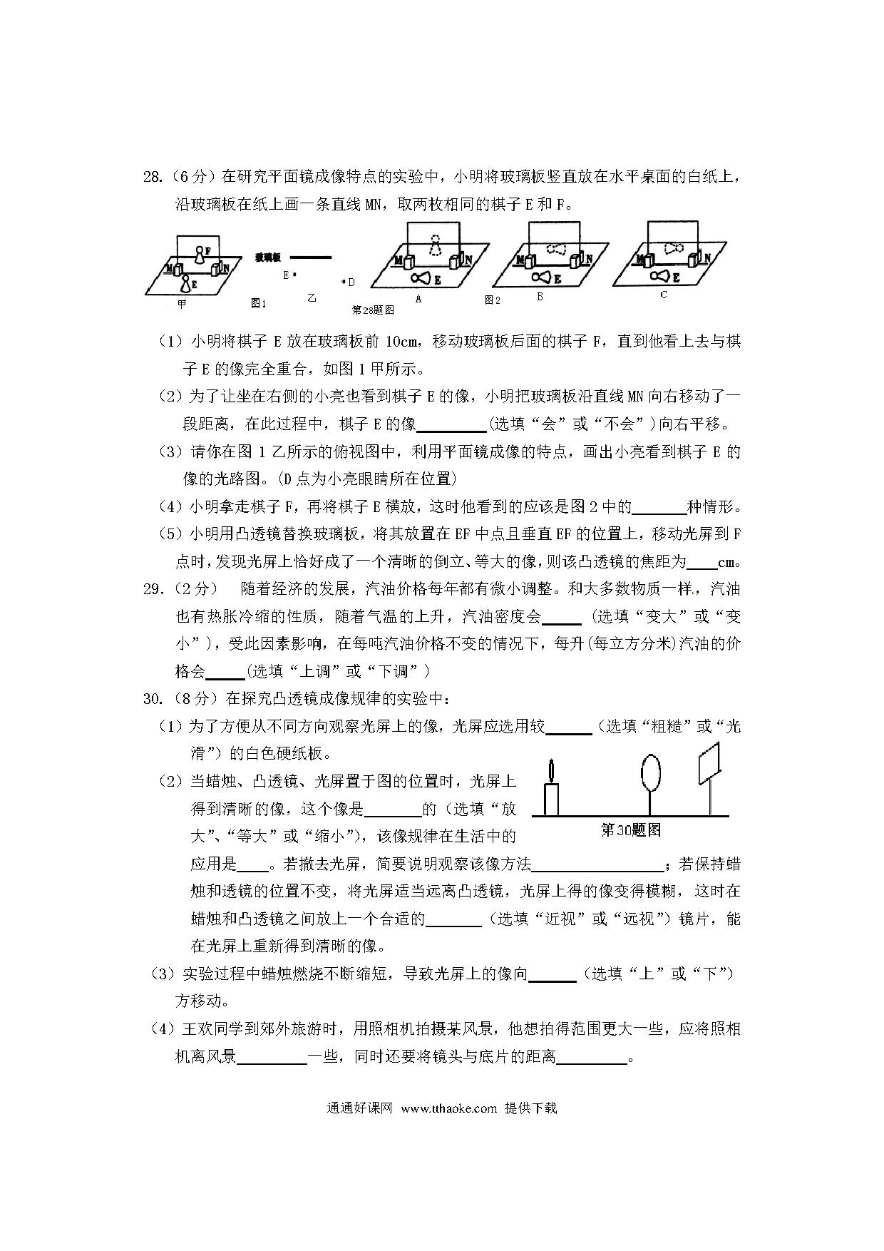厦门市同安区016-2017学年八年级第二学期物理期中试卷及答案