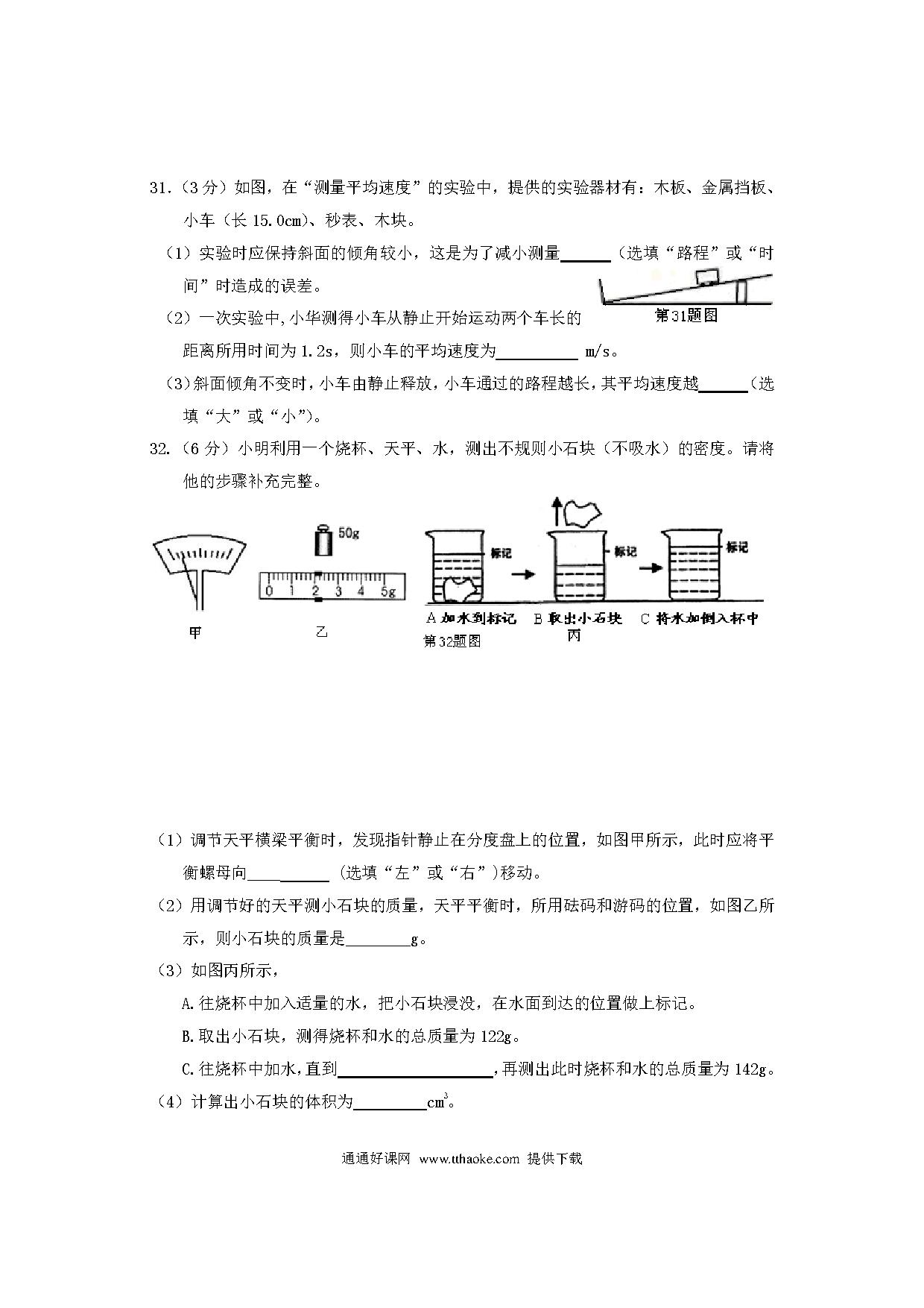 西华县2016-2017年八年级下学期物理期中试题及答案