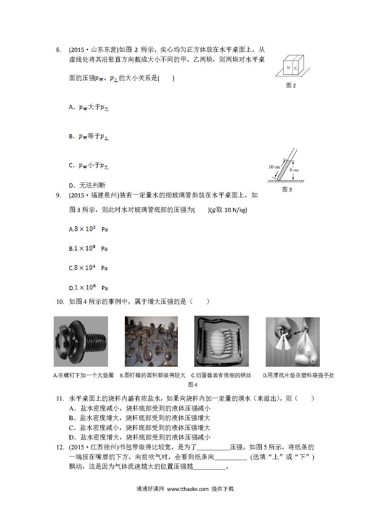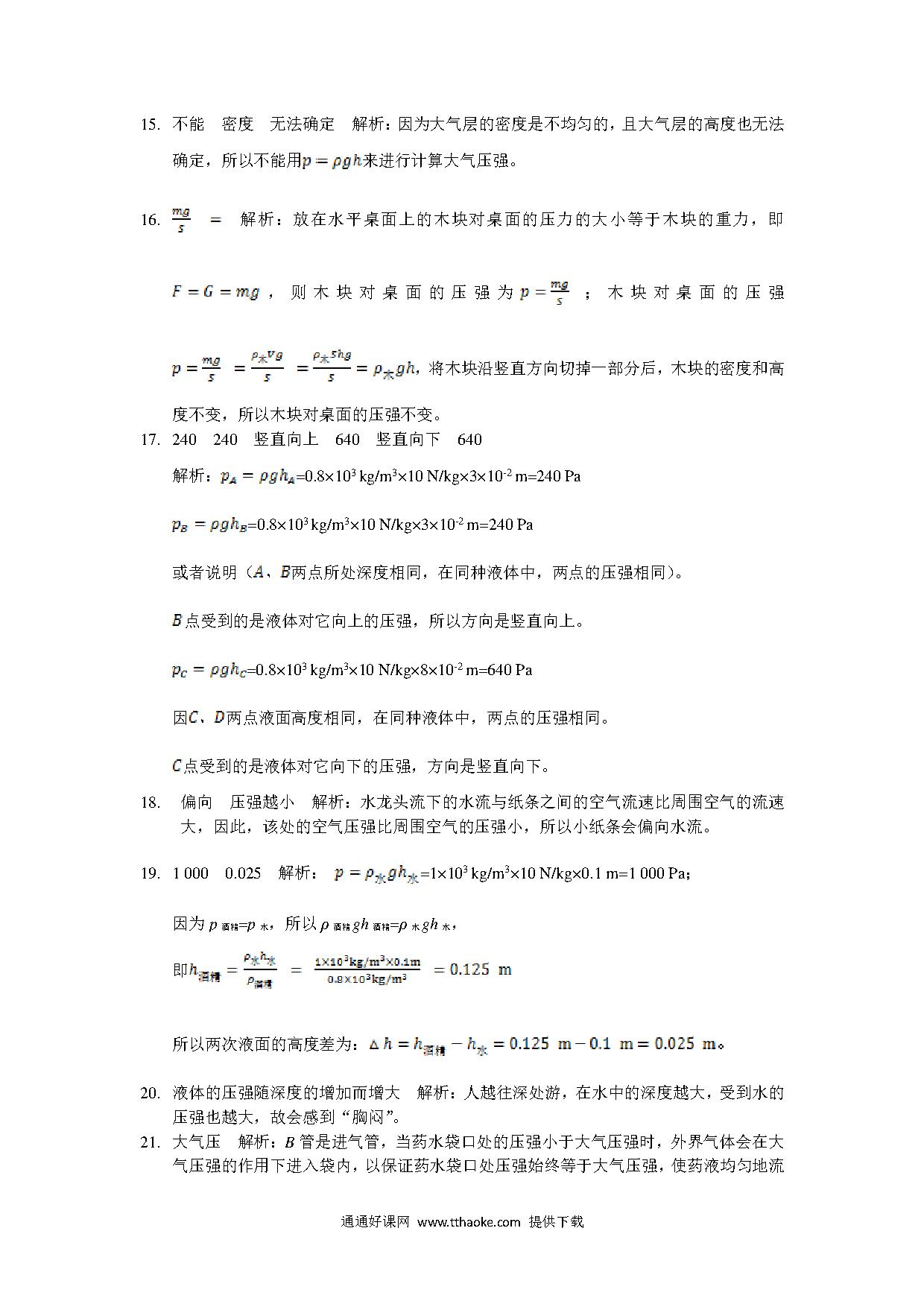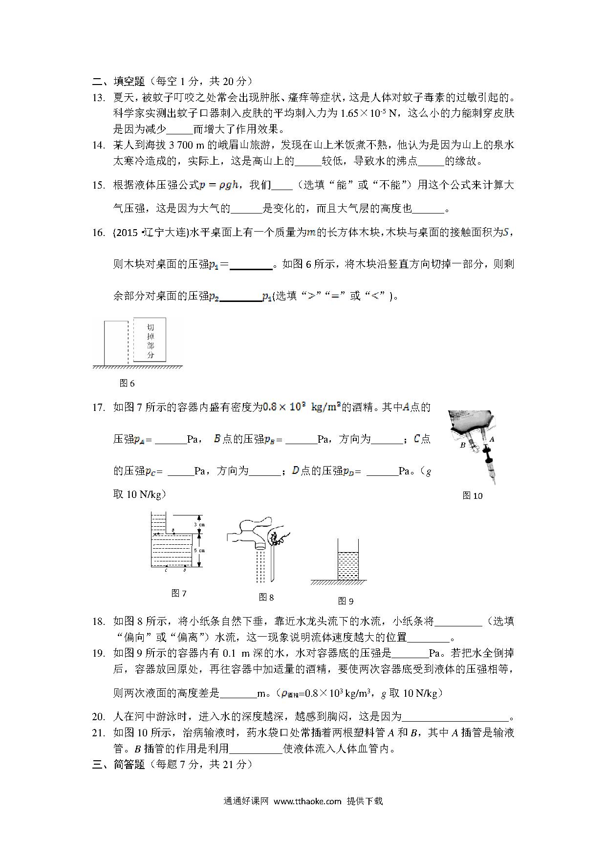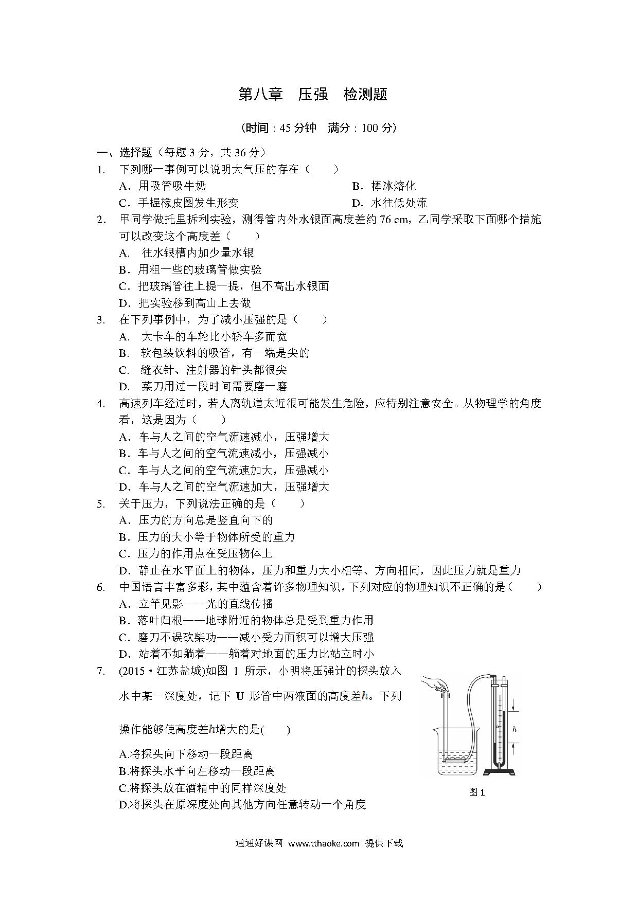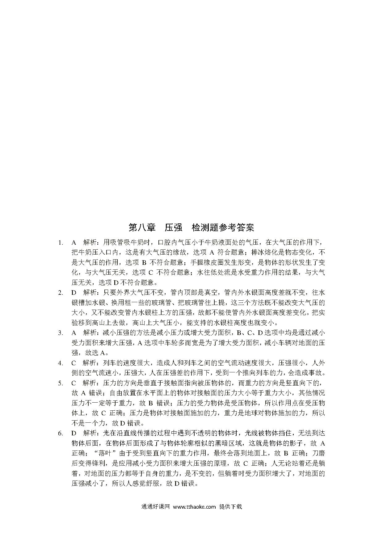 教材全解2016沪科版八年级物理下册第八章检测题及答案解析.pdf