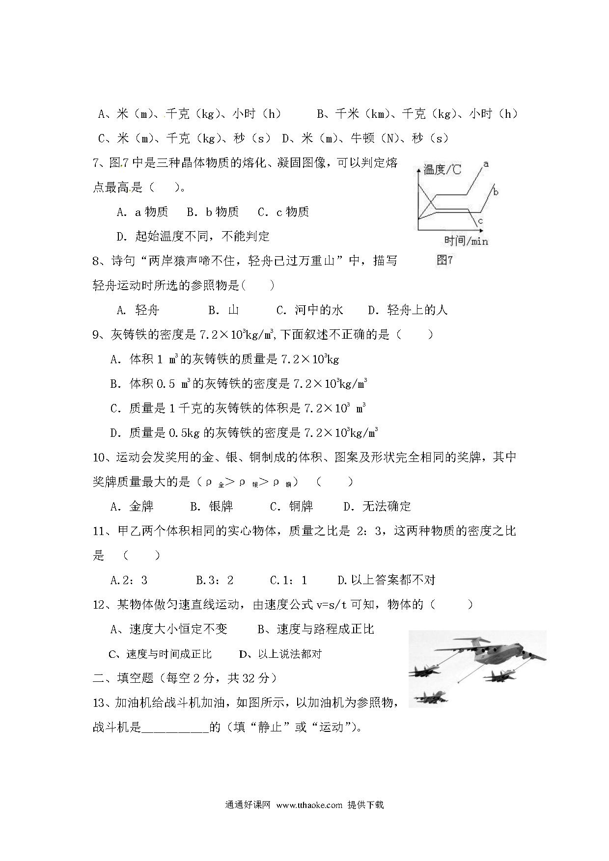 西华县2016-2017年八年级下学期物理期中试题及答案