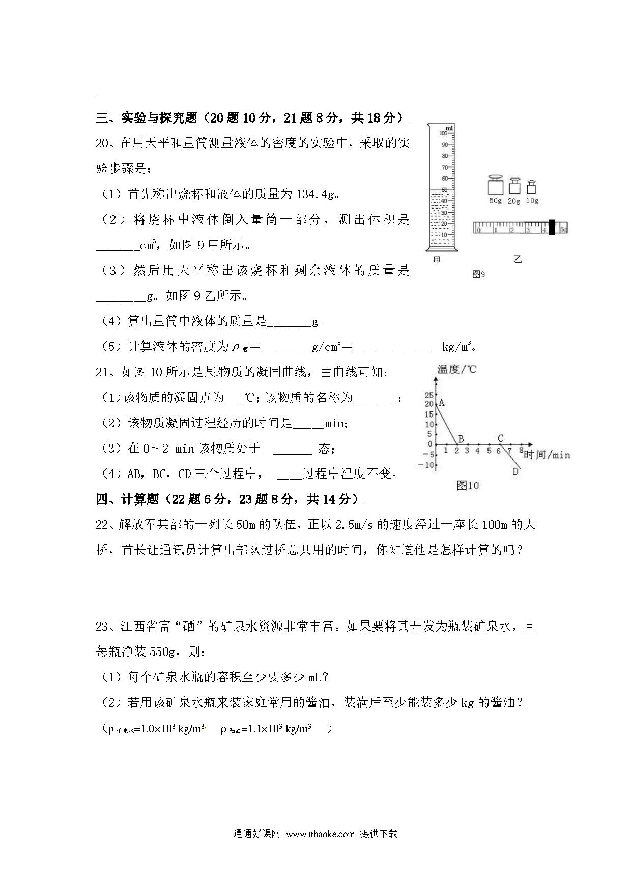 厦门市同安区016-2017学年八年级第二学期物理期中试卷及答案