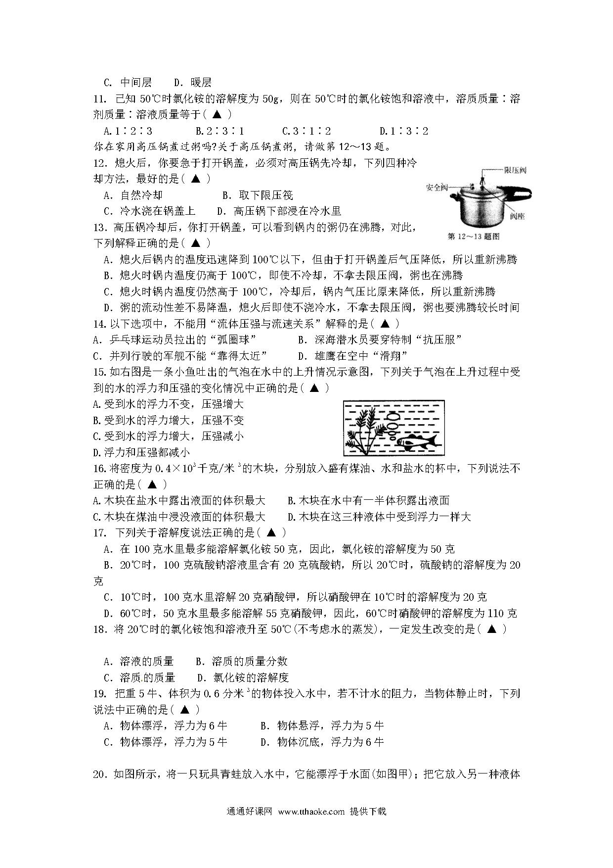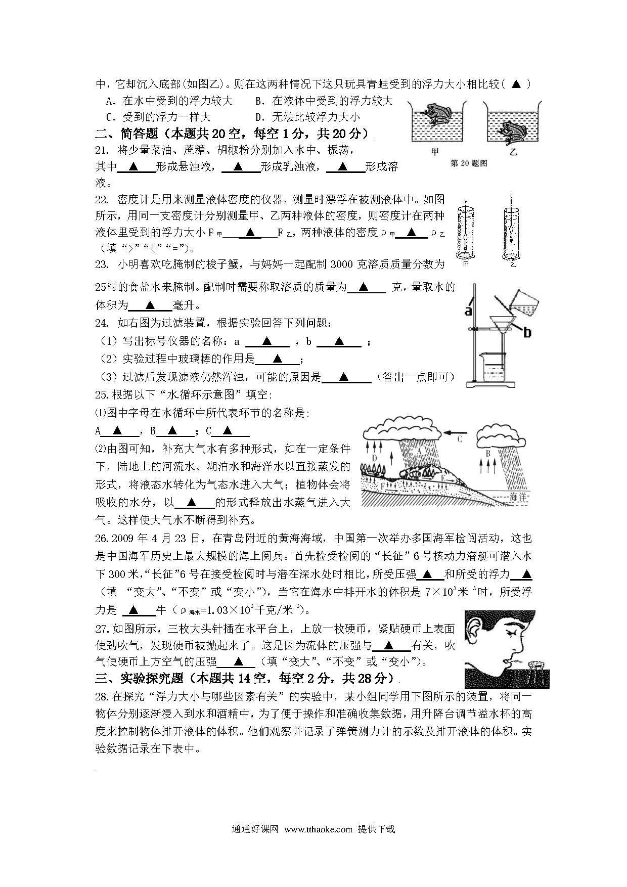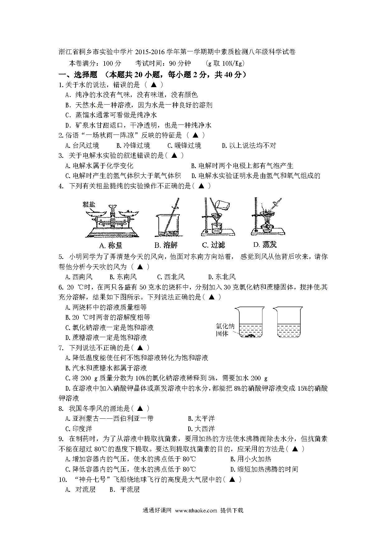 桐乡实验中学2015-2016年八年级上册科学期中试卷及答案.pdf