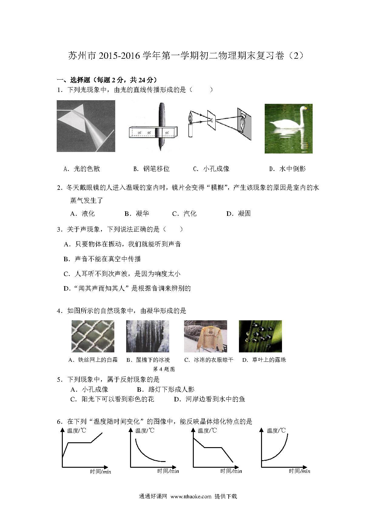 苏州市2015-2016学年苏科版初二物理期末复习题及答案2.pdf