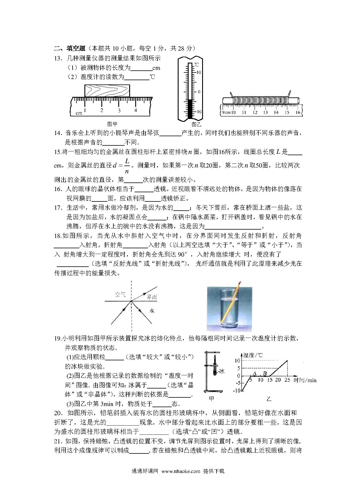 文安县2016-2017学年第二学期八年级物理期中试卷及答案