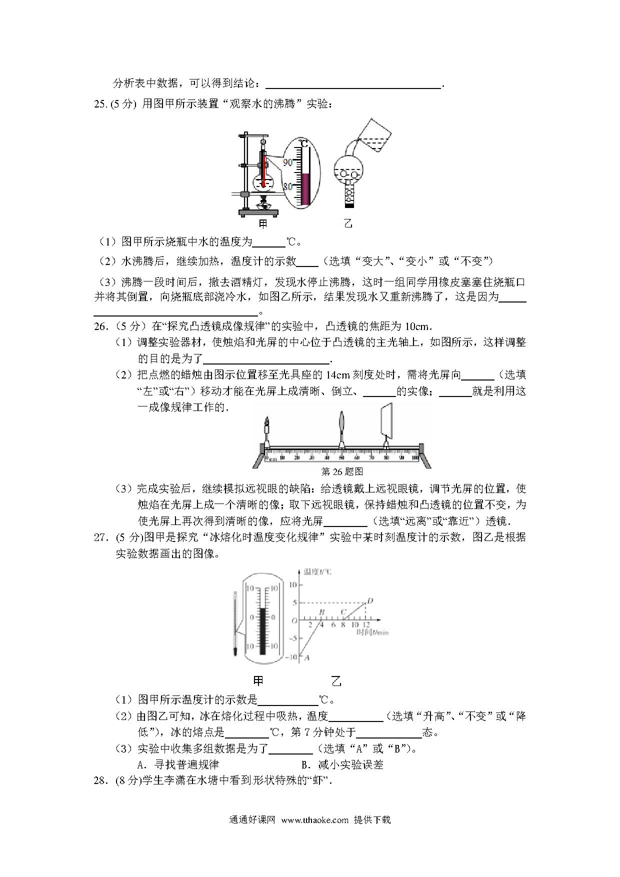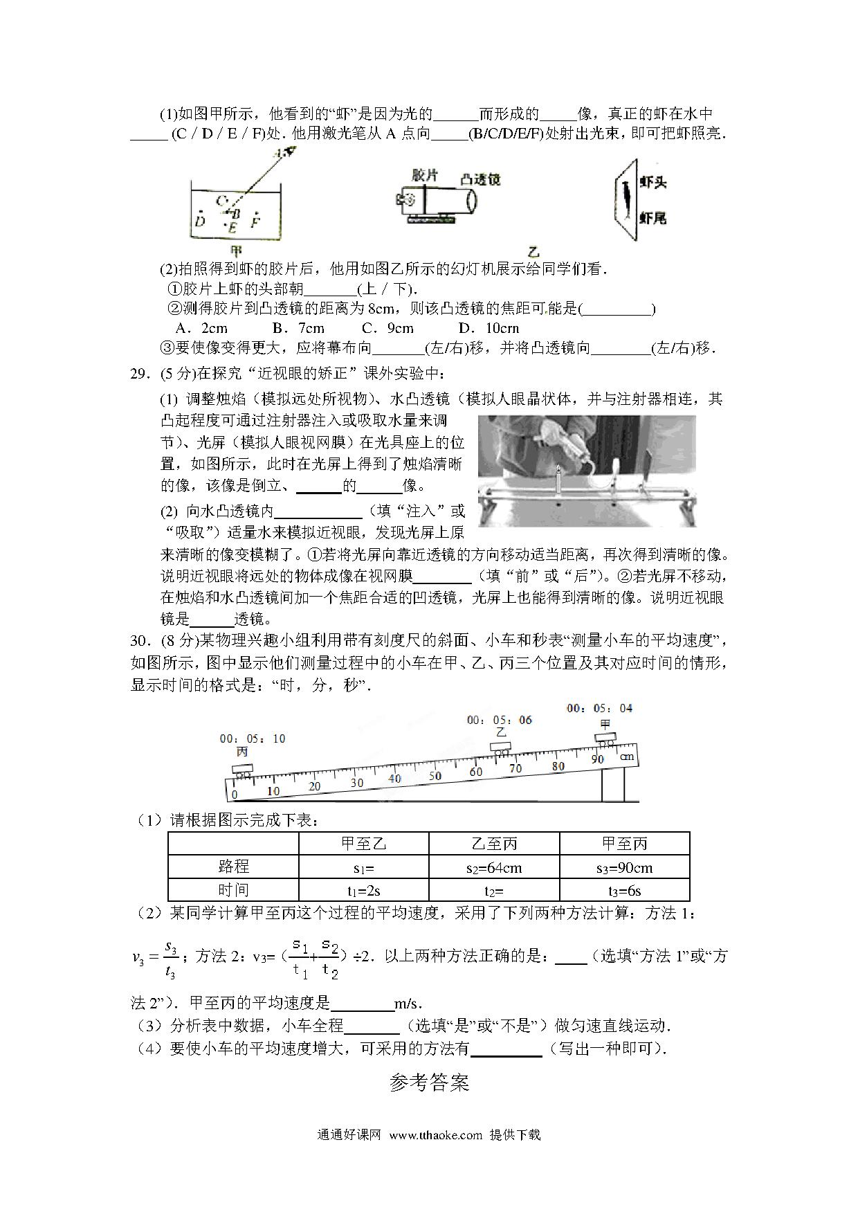 重庆江津联考2016-2017学年度下期初二物理期中试卷及答案