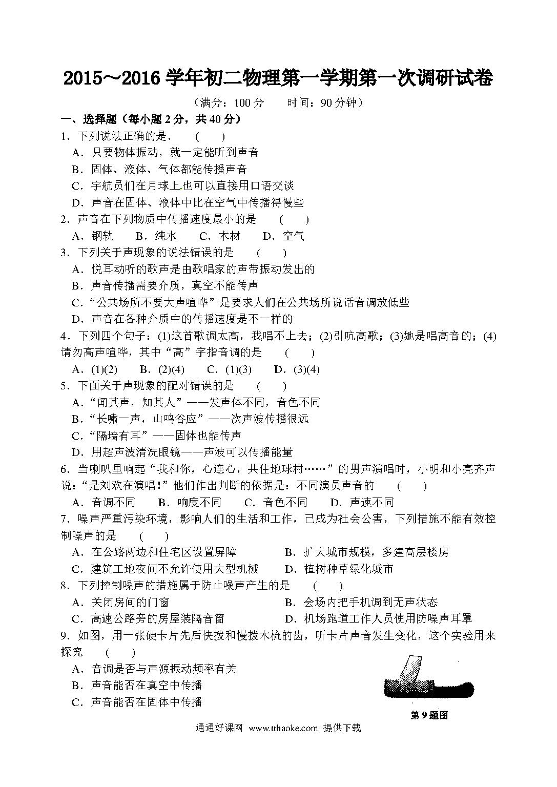 常熟阳光学校2015-2016年八年级第一次月考物理试卷及答案.pdf
