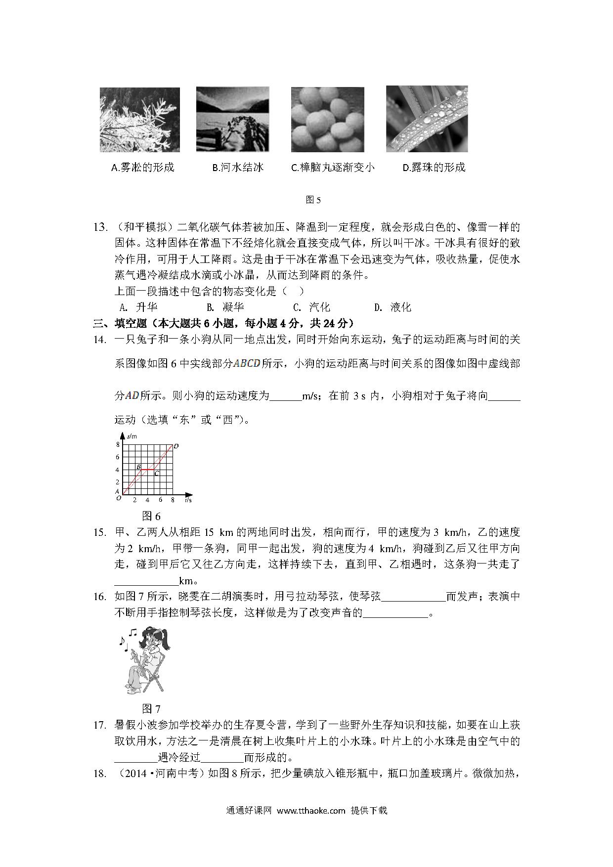 文安县2016-2017学年第二学期八年级物理期中试卷及答案
