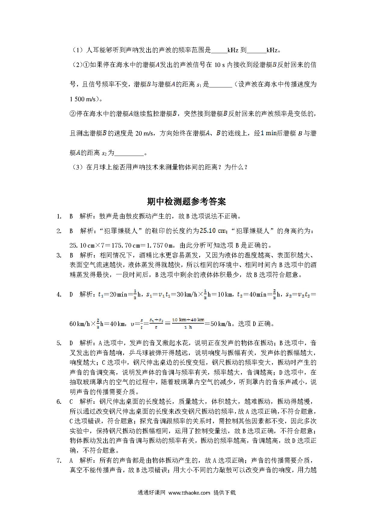 全解2015年人教版八年级物理上册期中检测题附解析.pdf