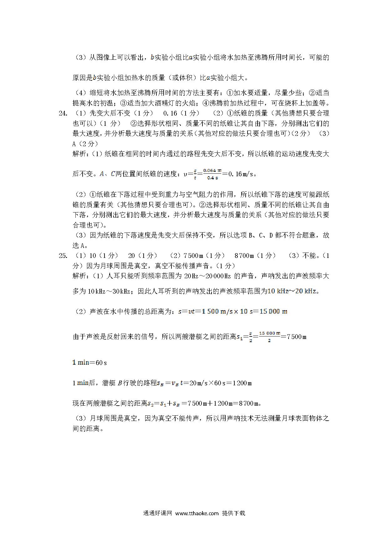 厦门市同安区016-2017学年八年级第二学期物理期中试卷及答案
