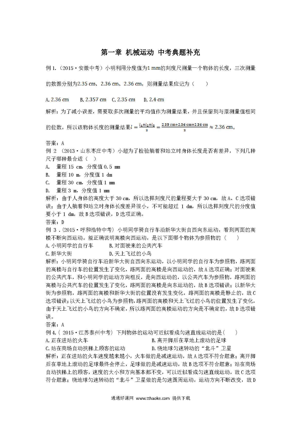 全解2015年八年级物理上册第一章机械运动中考典型题附解析.pdf