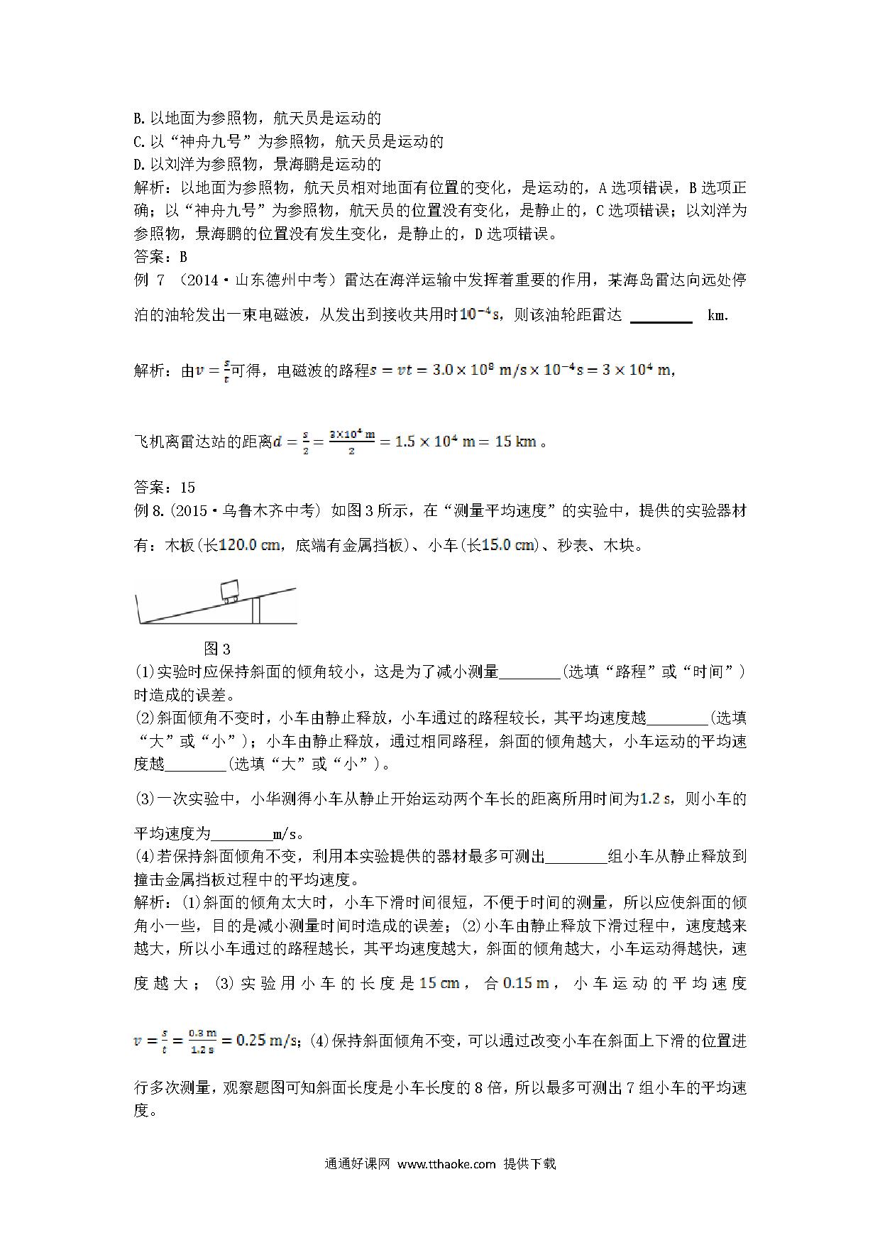 全解2015年八年级物理上册第一章机械运动中考典型题附解析