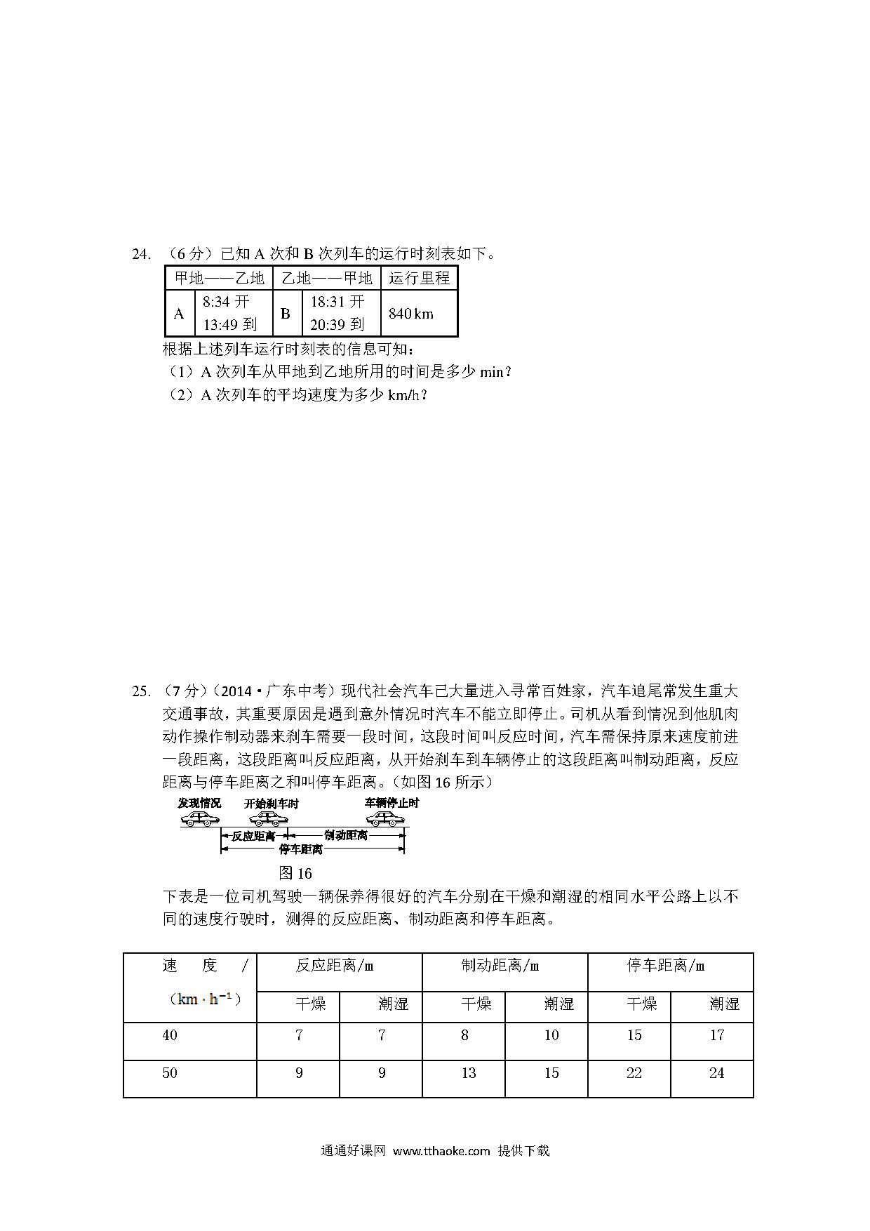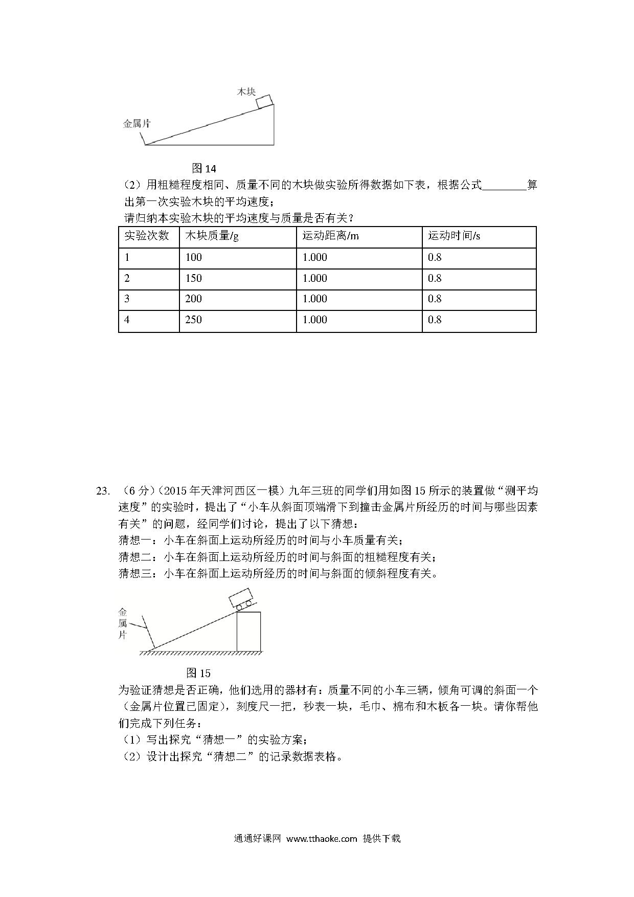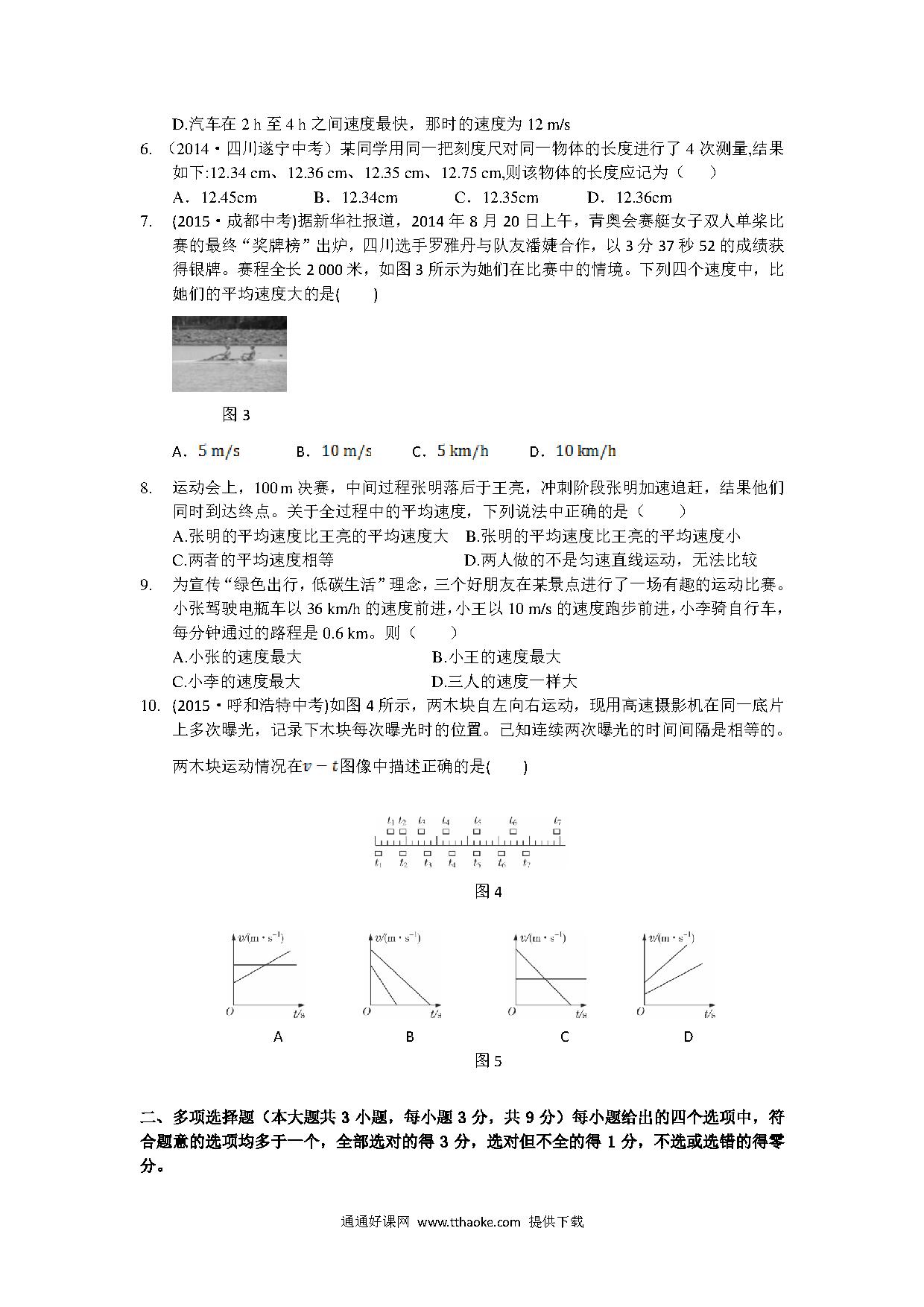全解2015年八年级物理上册第一章 机械运动检测题附解析