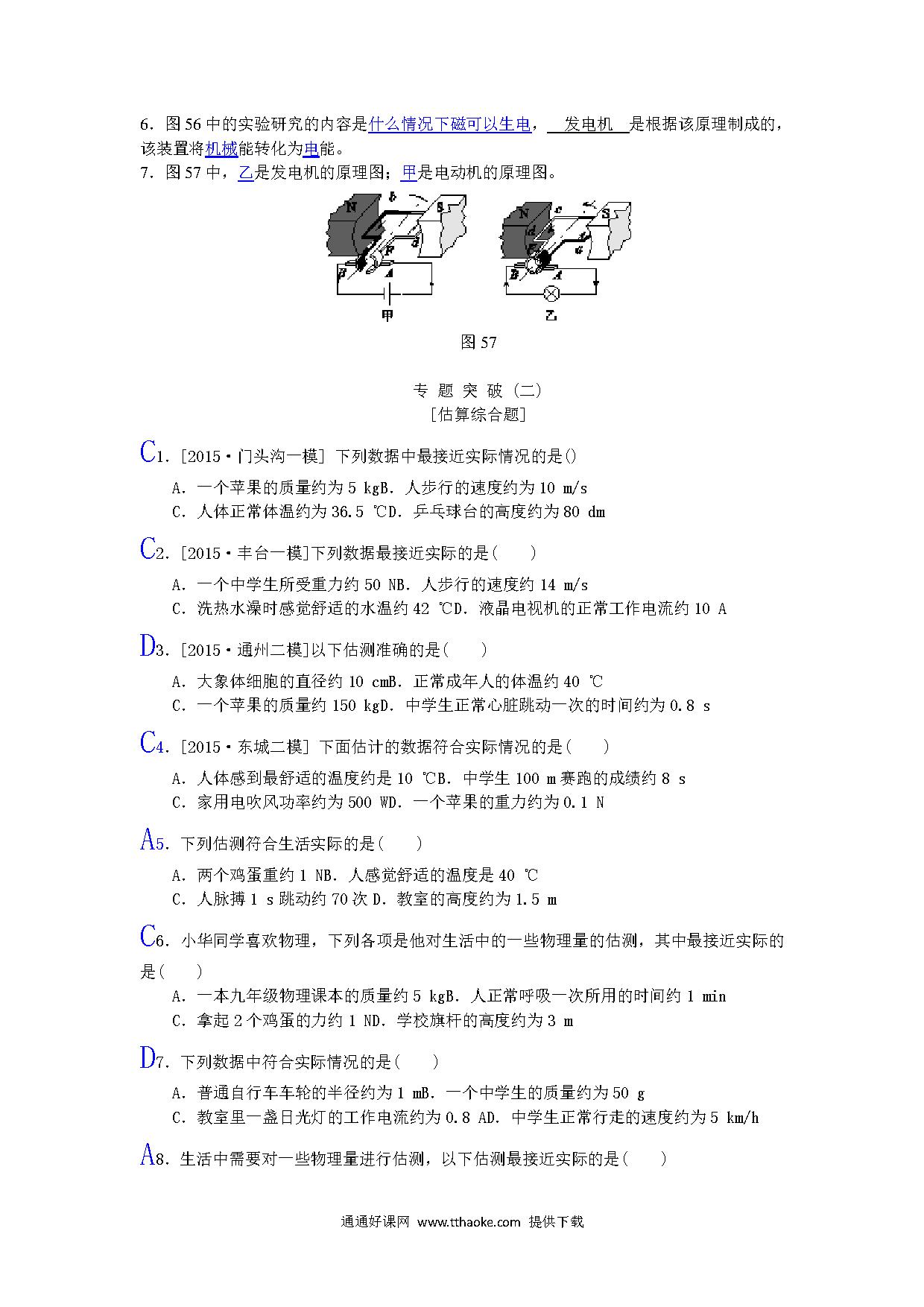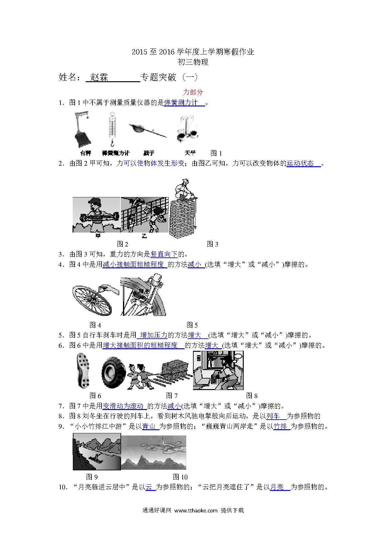 满洲里市2017-2018学年度上学期九年级物理期末试题及答案