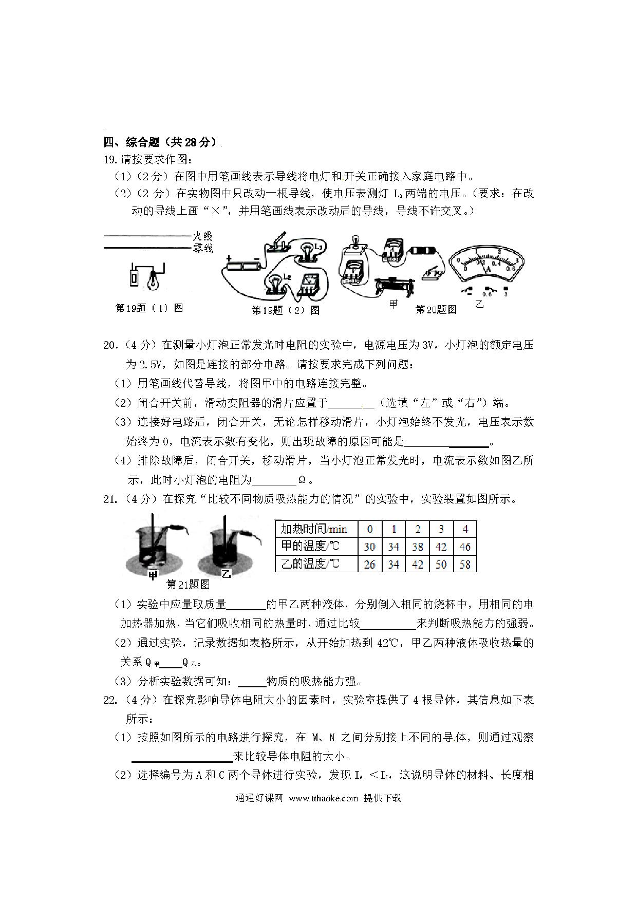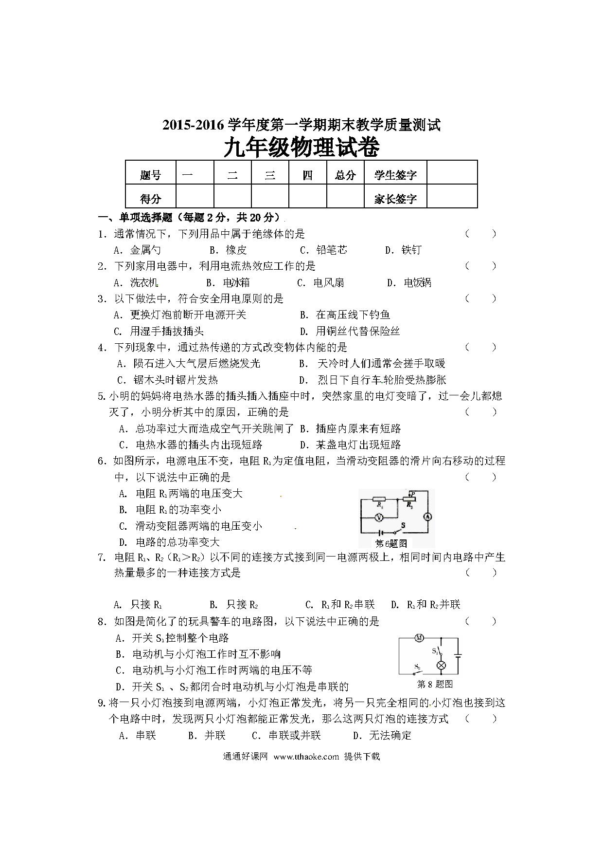 长春市九台区2015-2016学年初三物理期末试题及答案.pdf