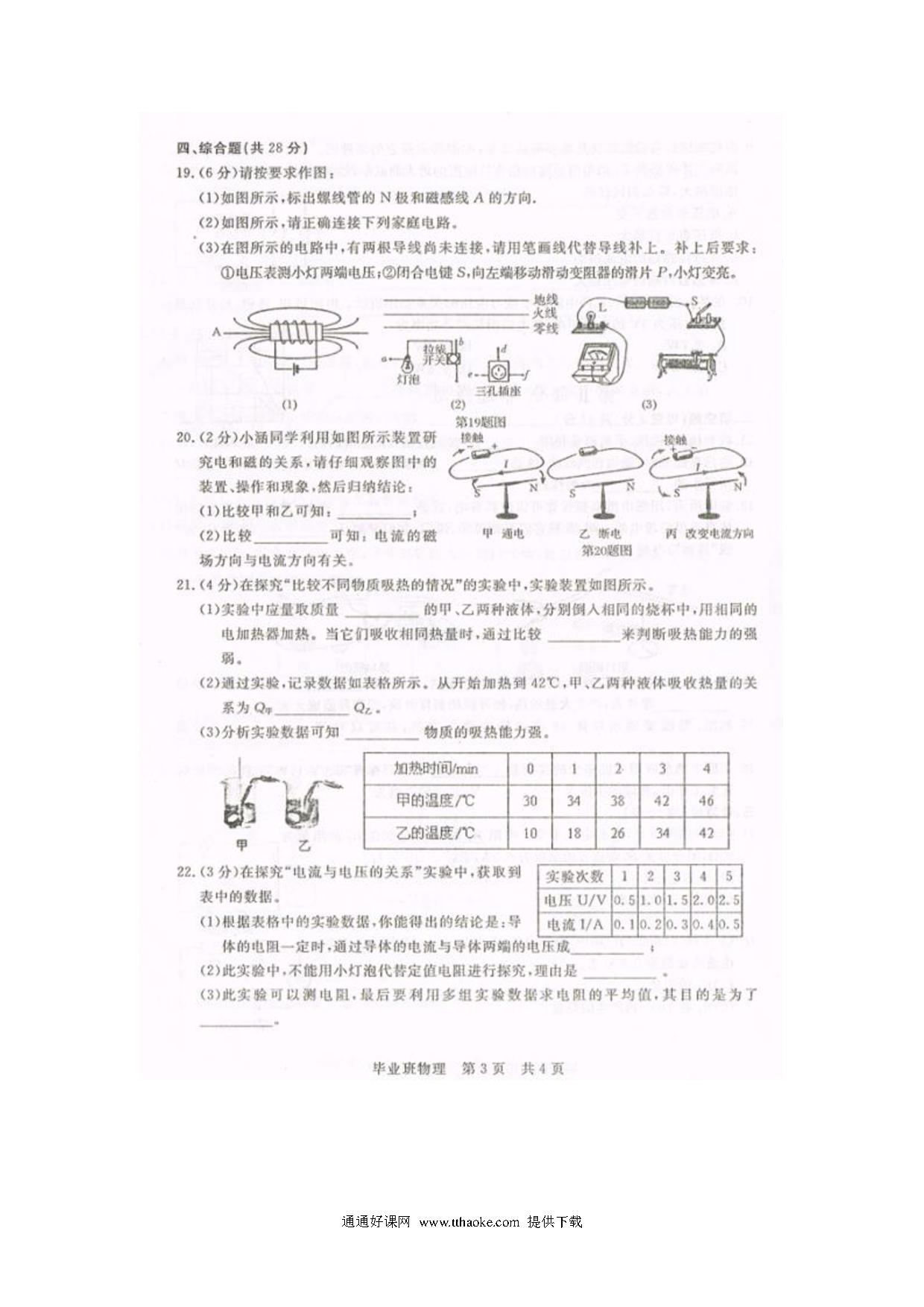 太原市2017-2018学年第一学期初三物理期末考试试卷及答案