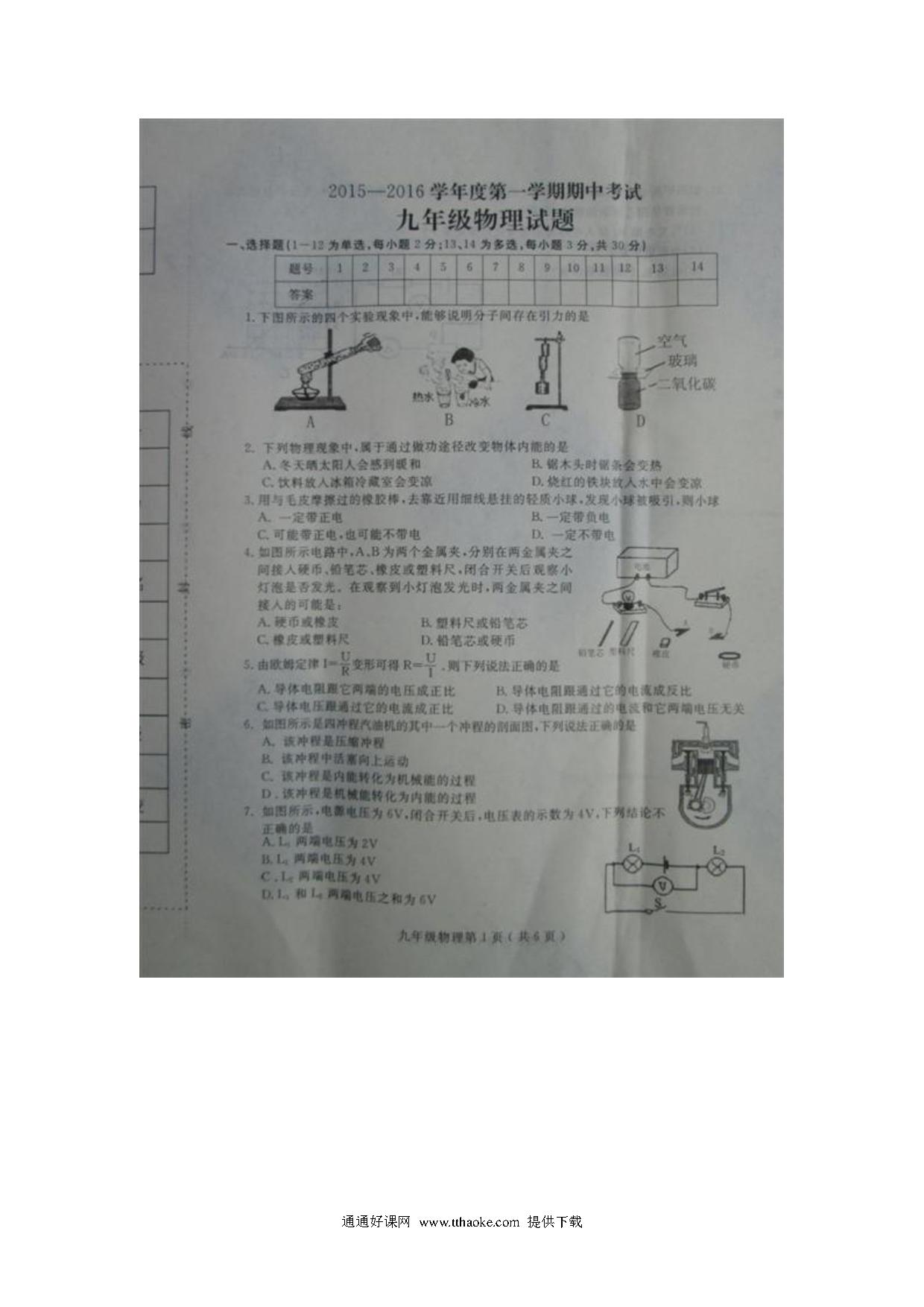 石家庄市栾城县2015-2016学年九年级物理上学期期中试卷及答案.pdf
