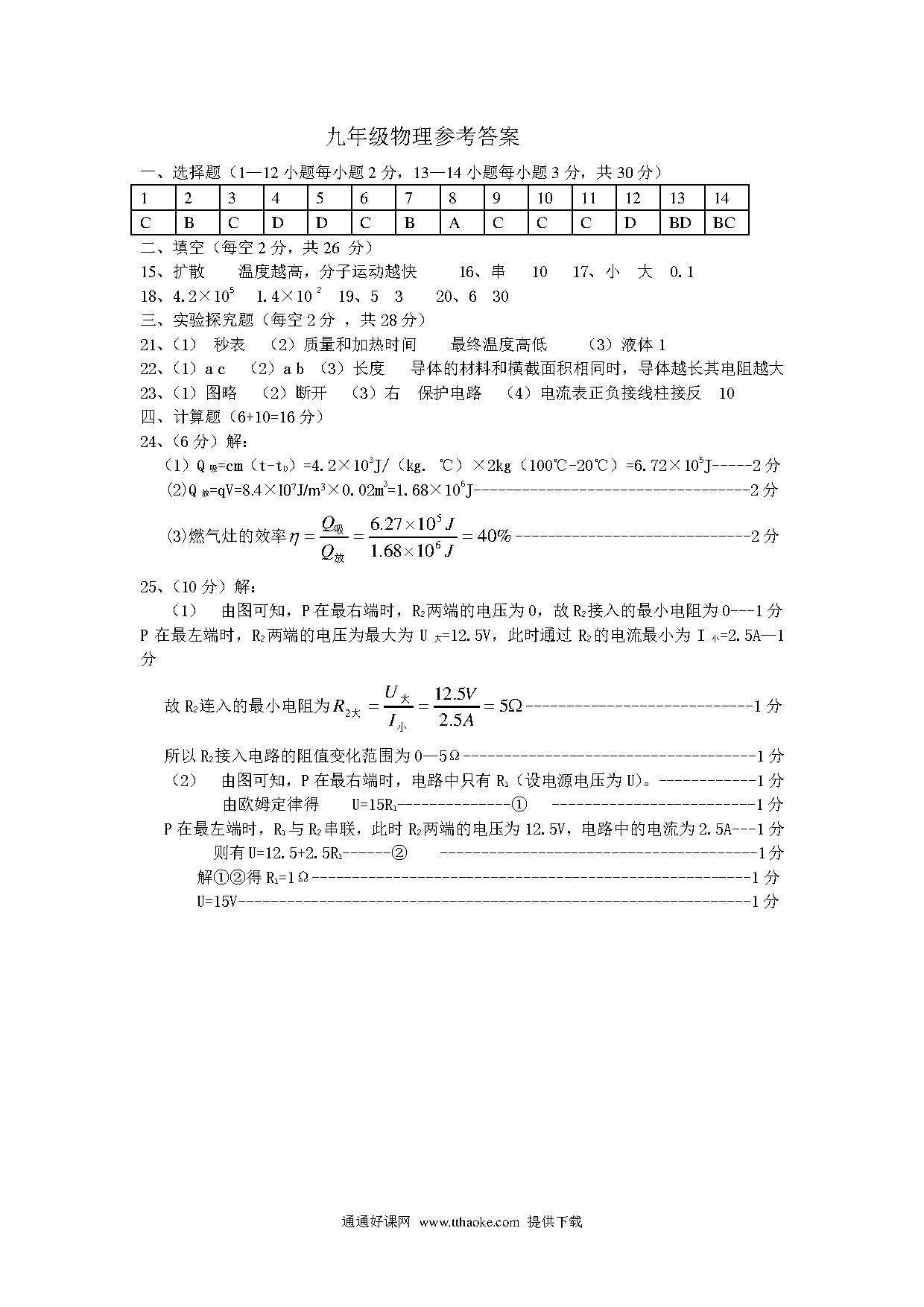 太原市2017-2018学年第一学期初三物理期末考试试卷及答案