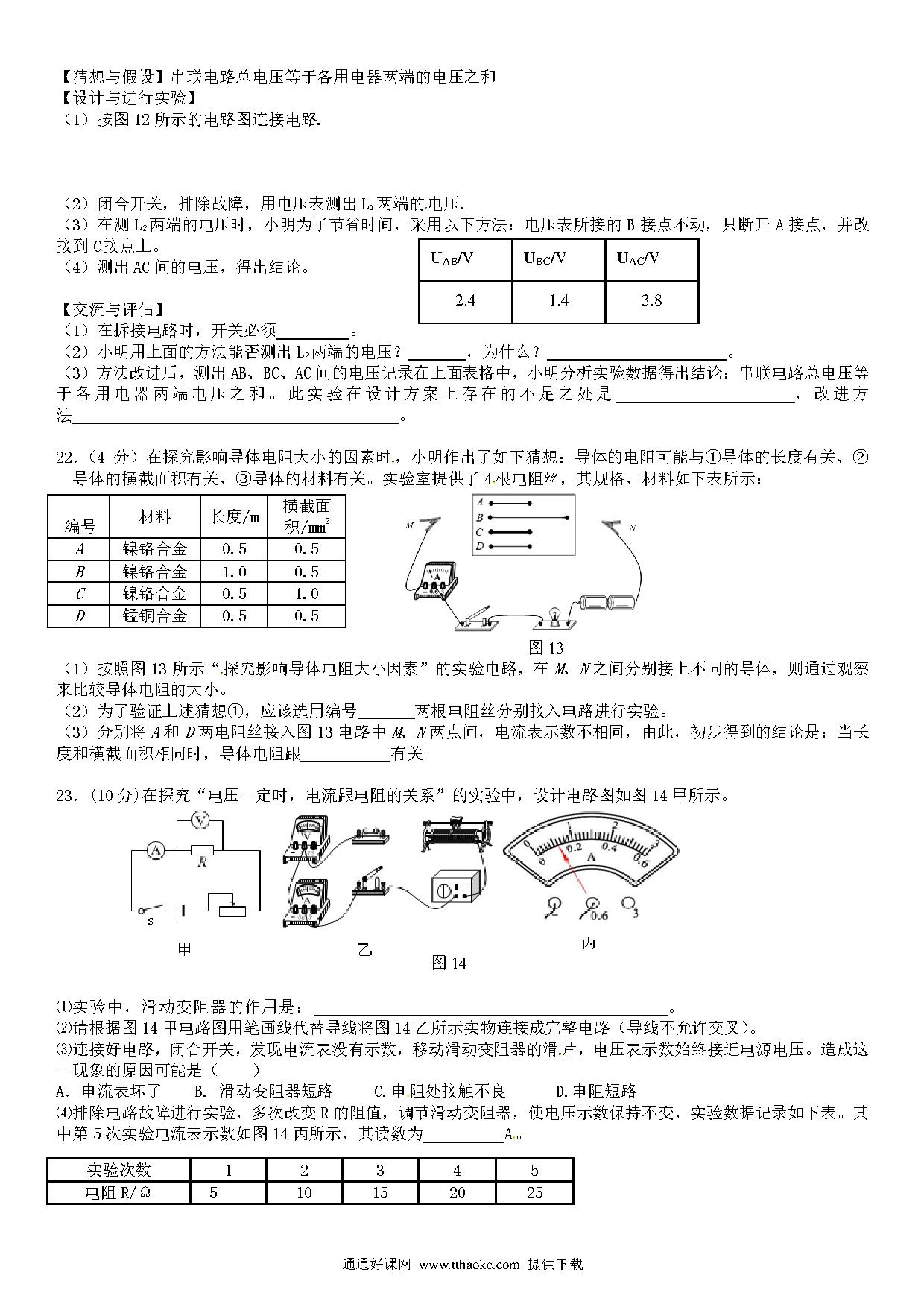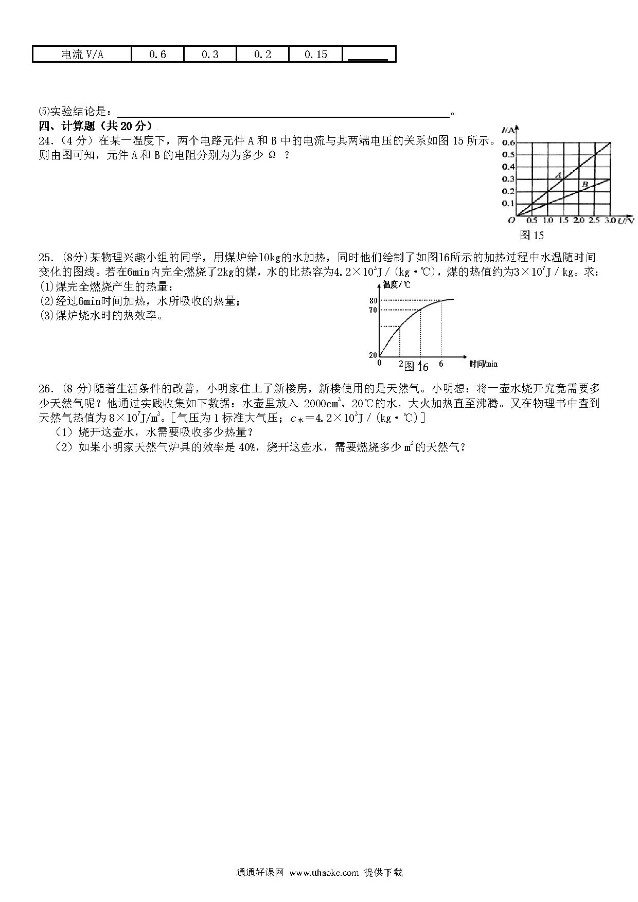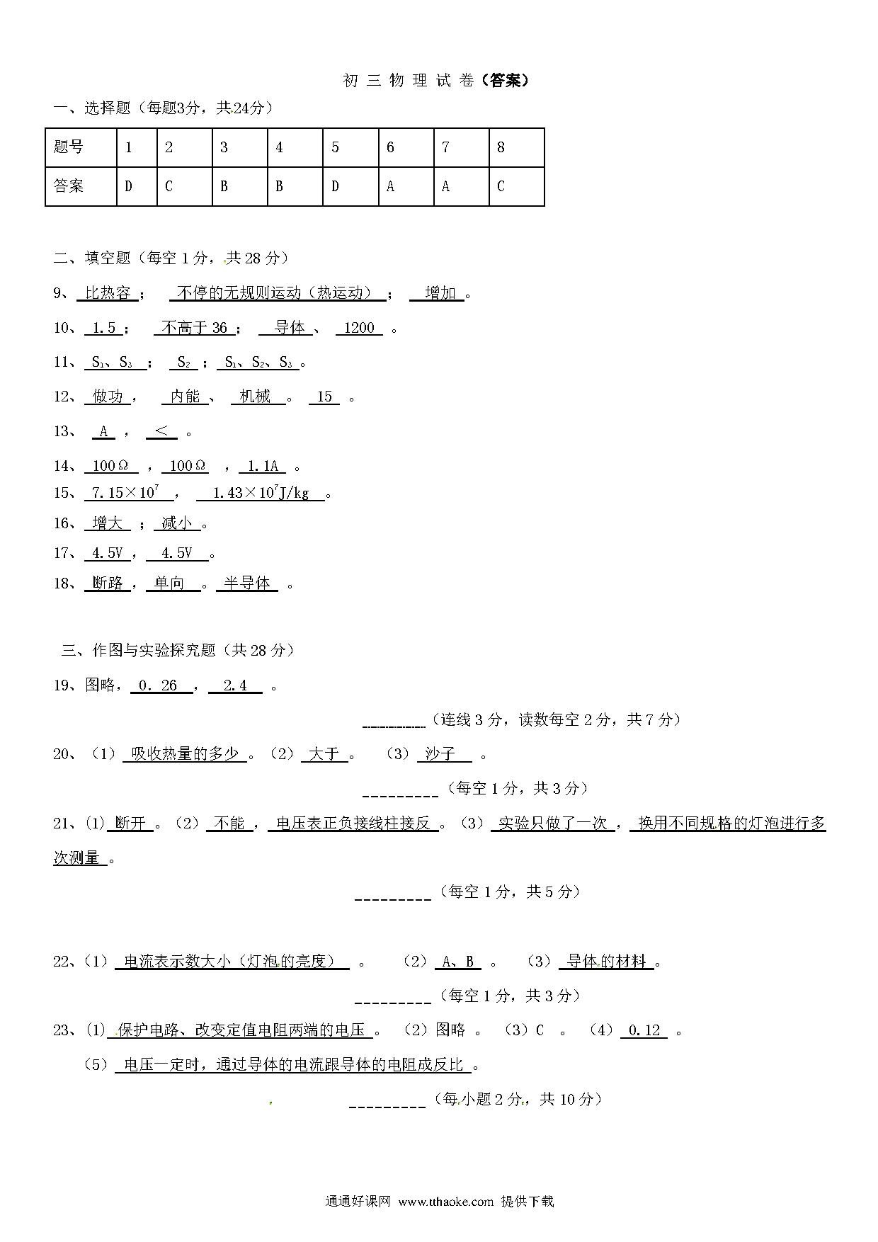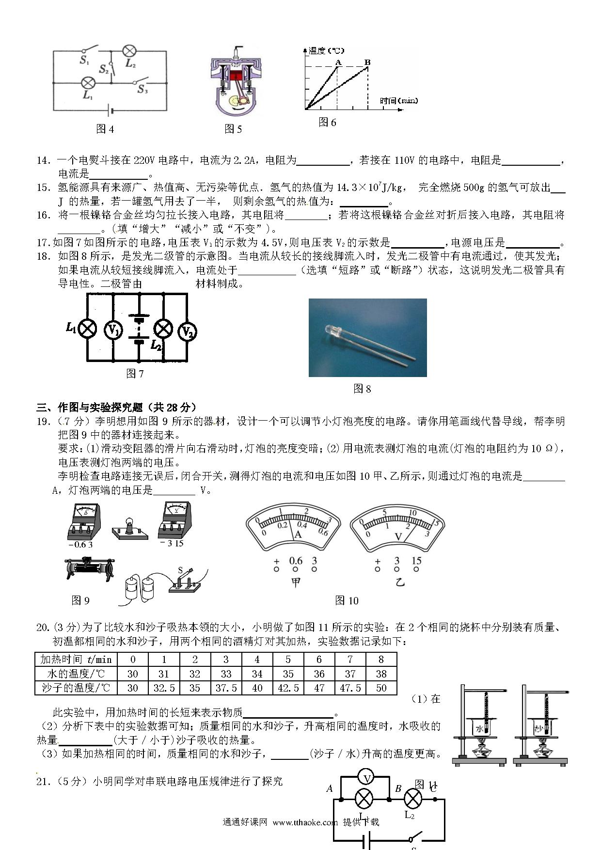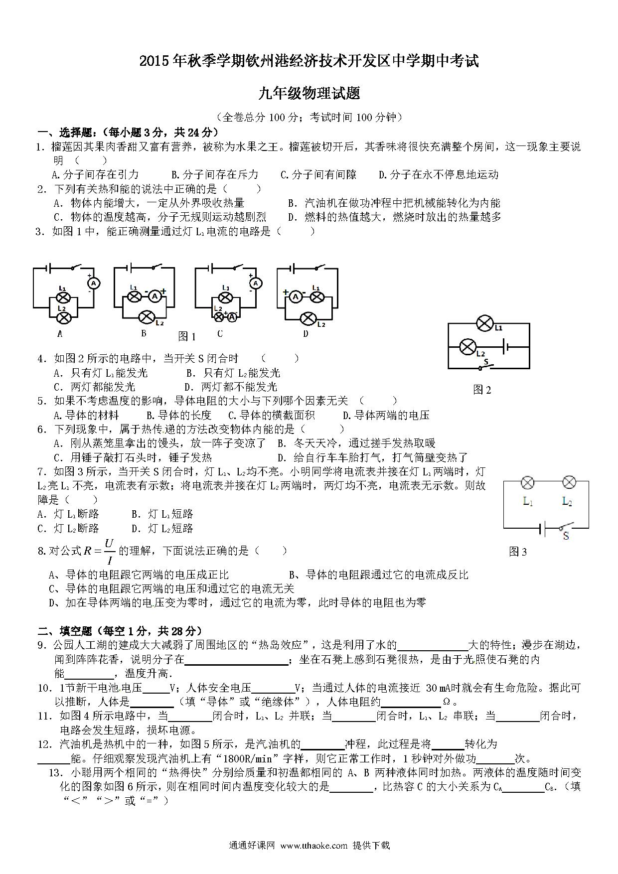 钦州港开发区2015年秋季学期九年级物理期中调研试题及答案.pdf