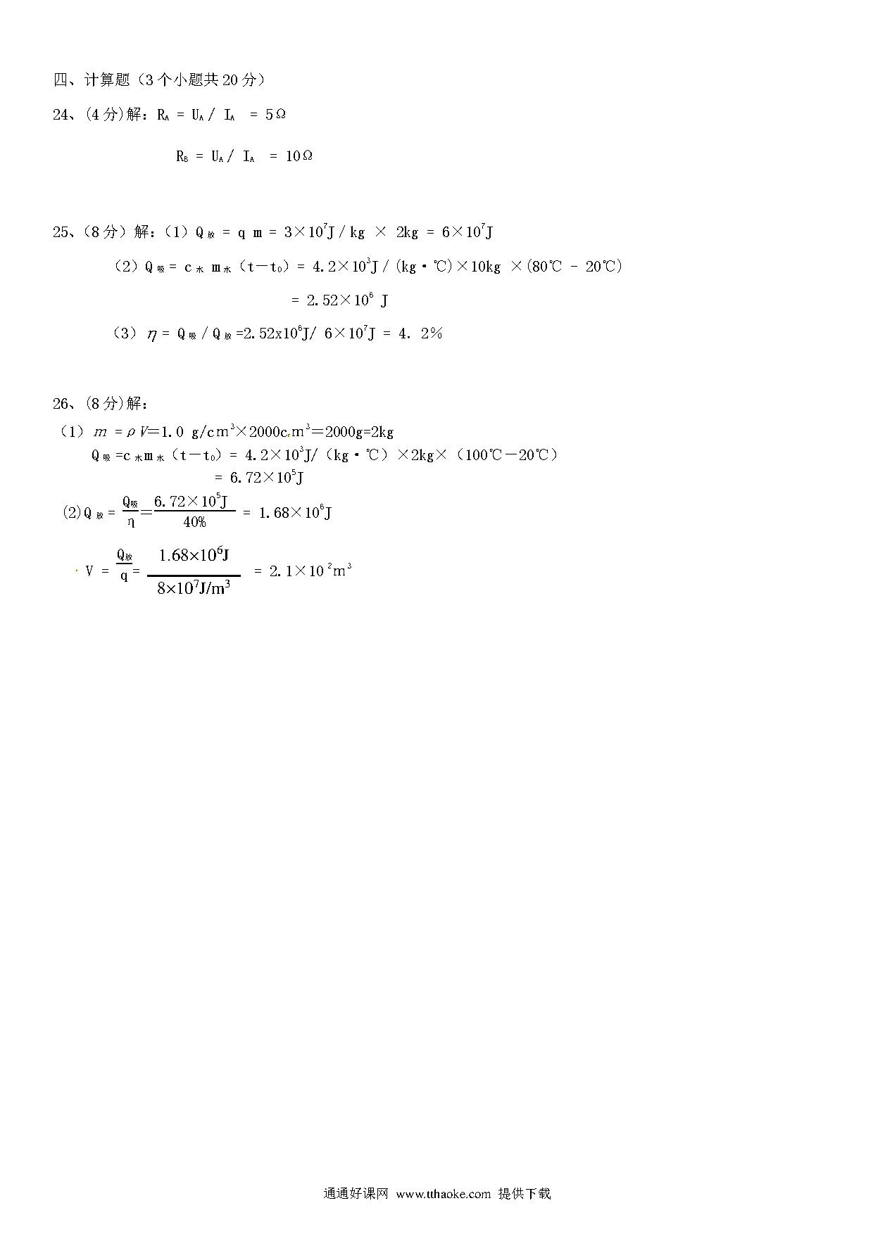 满洲里市2017-2018学年度上学期九年级物理期末试题及答案