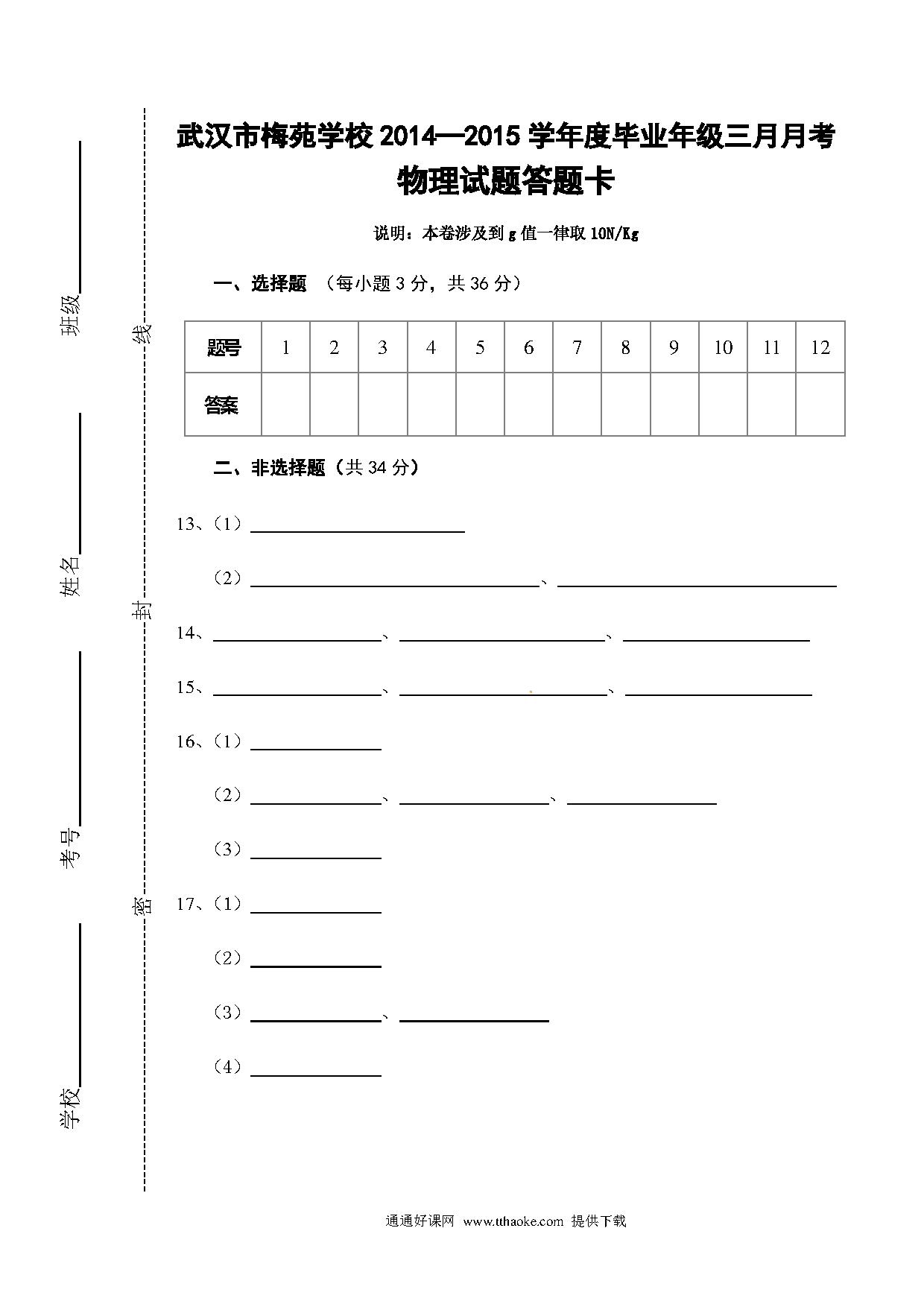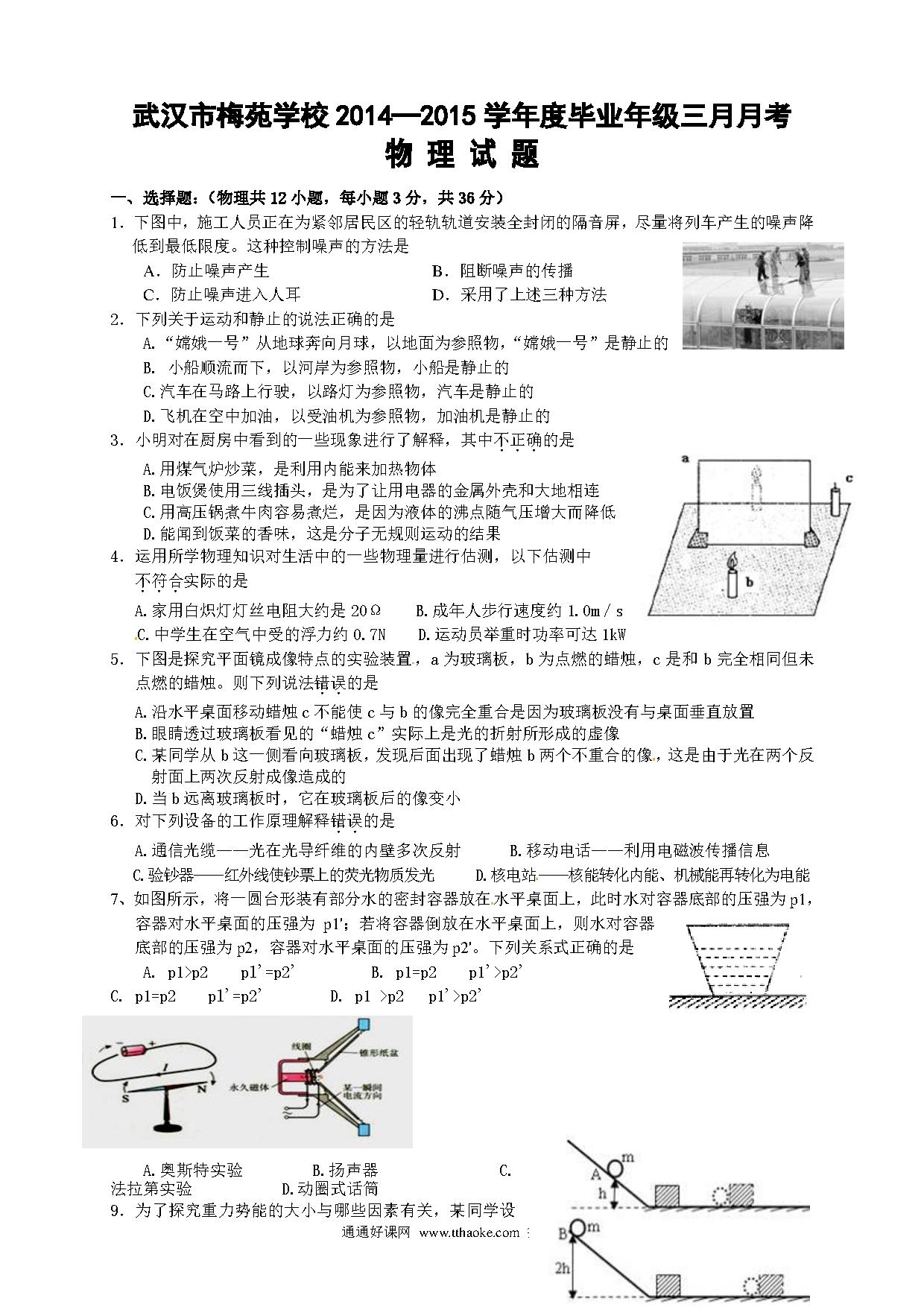 宣城市奋飞学校2017~2018学年第一学期九年级物理12月月考试卷
