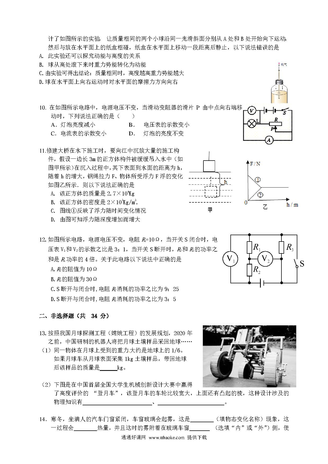 太原市2017-2018学年第一学期初三物理期末考试试卷及答案