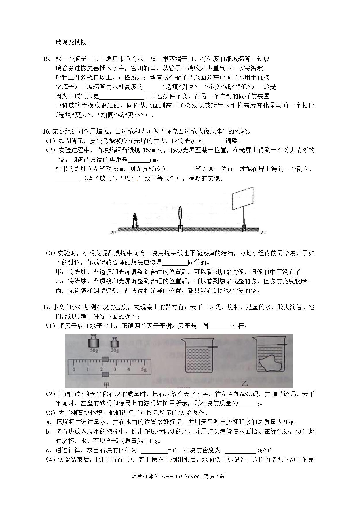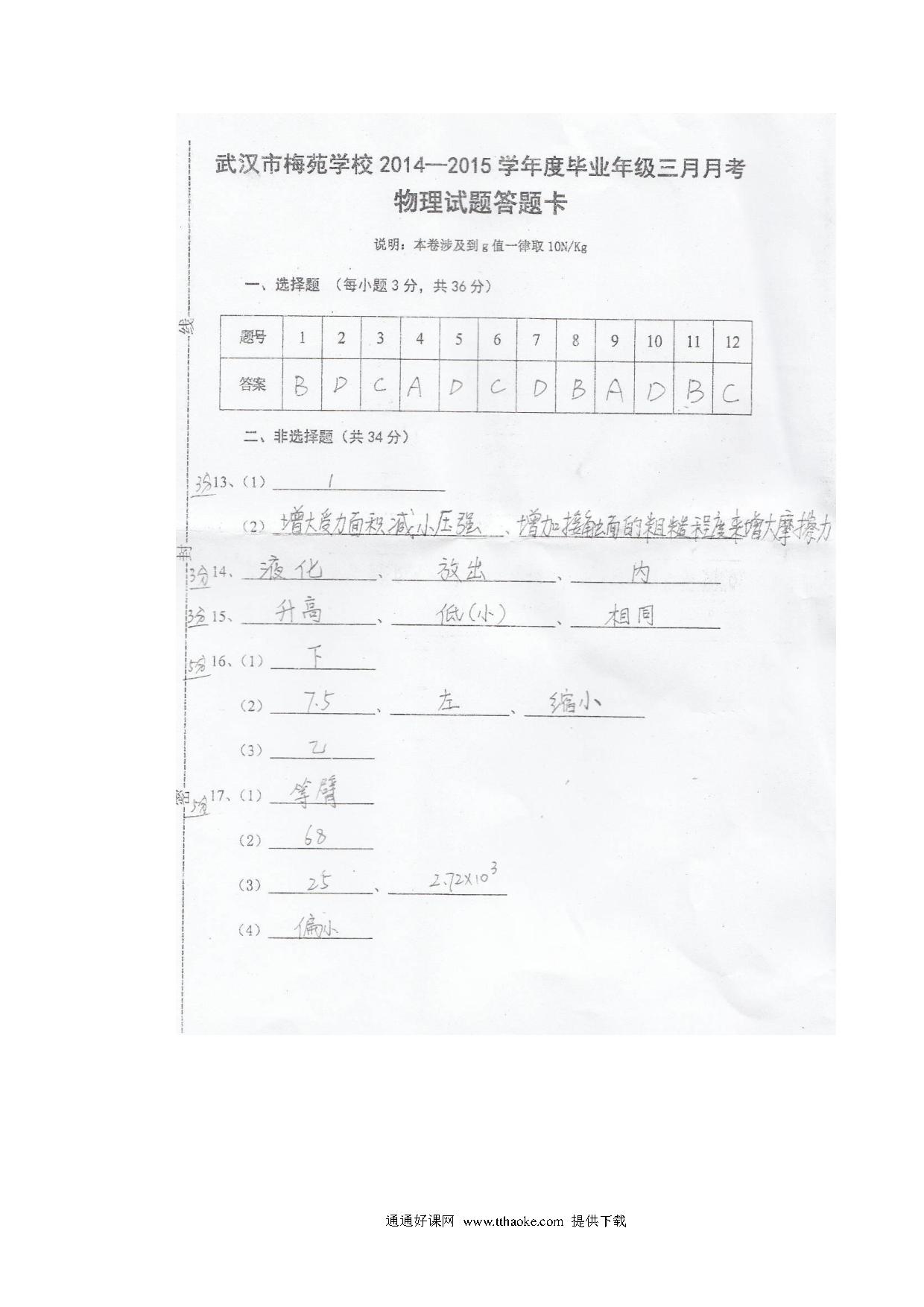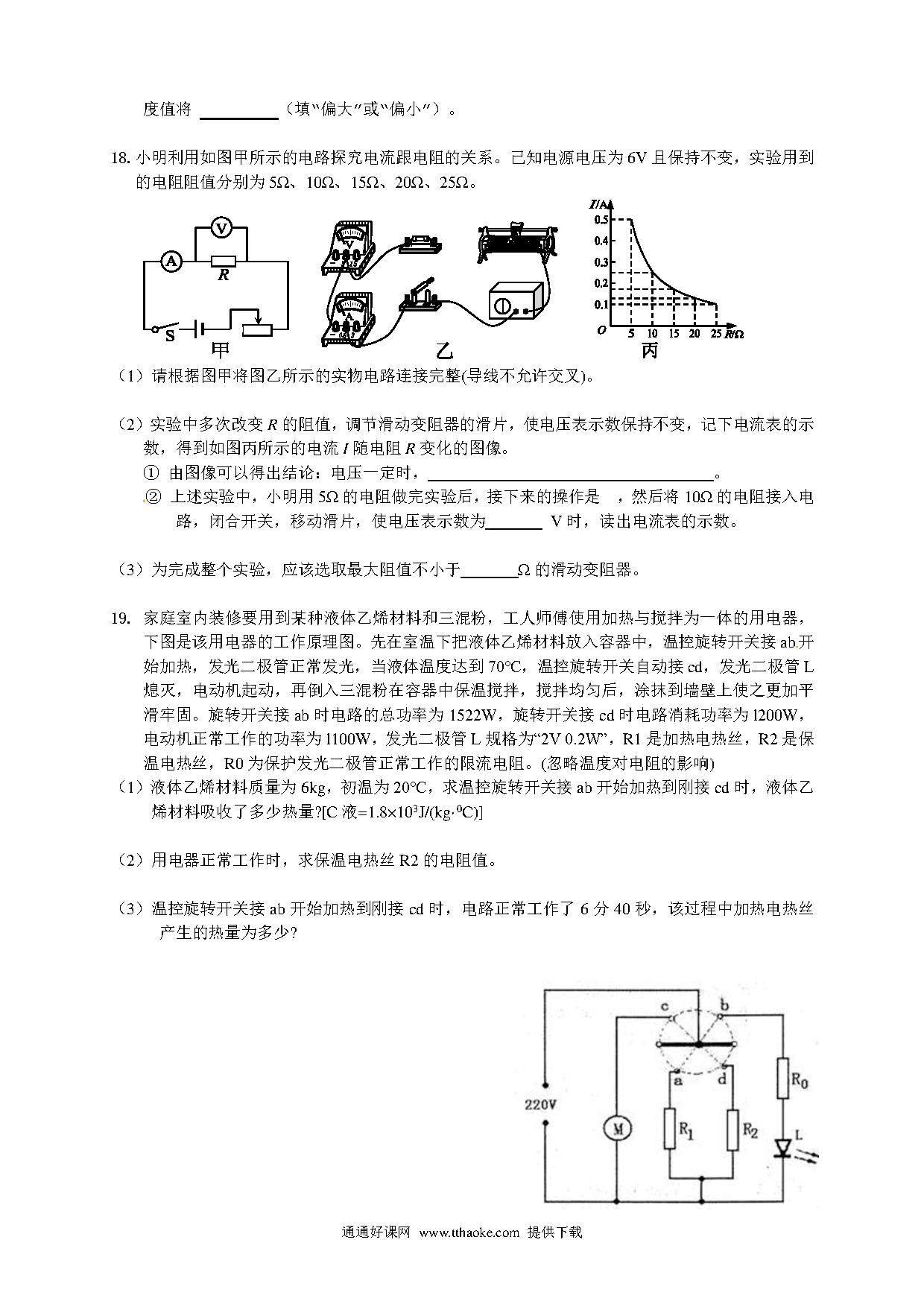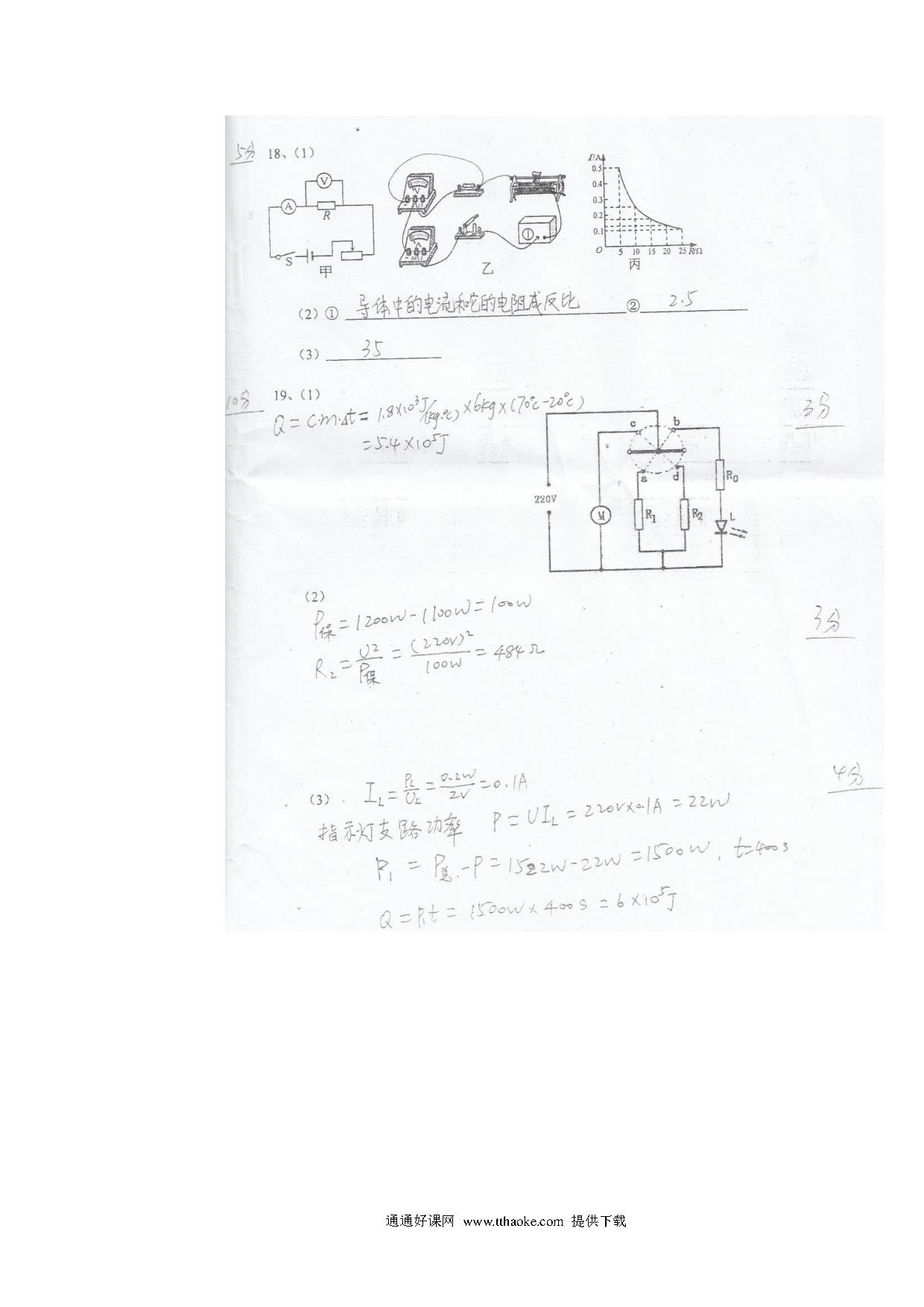 满洲里市2017-2018学年度上学期九年级物理期末试题及答案