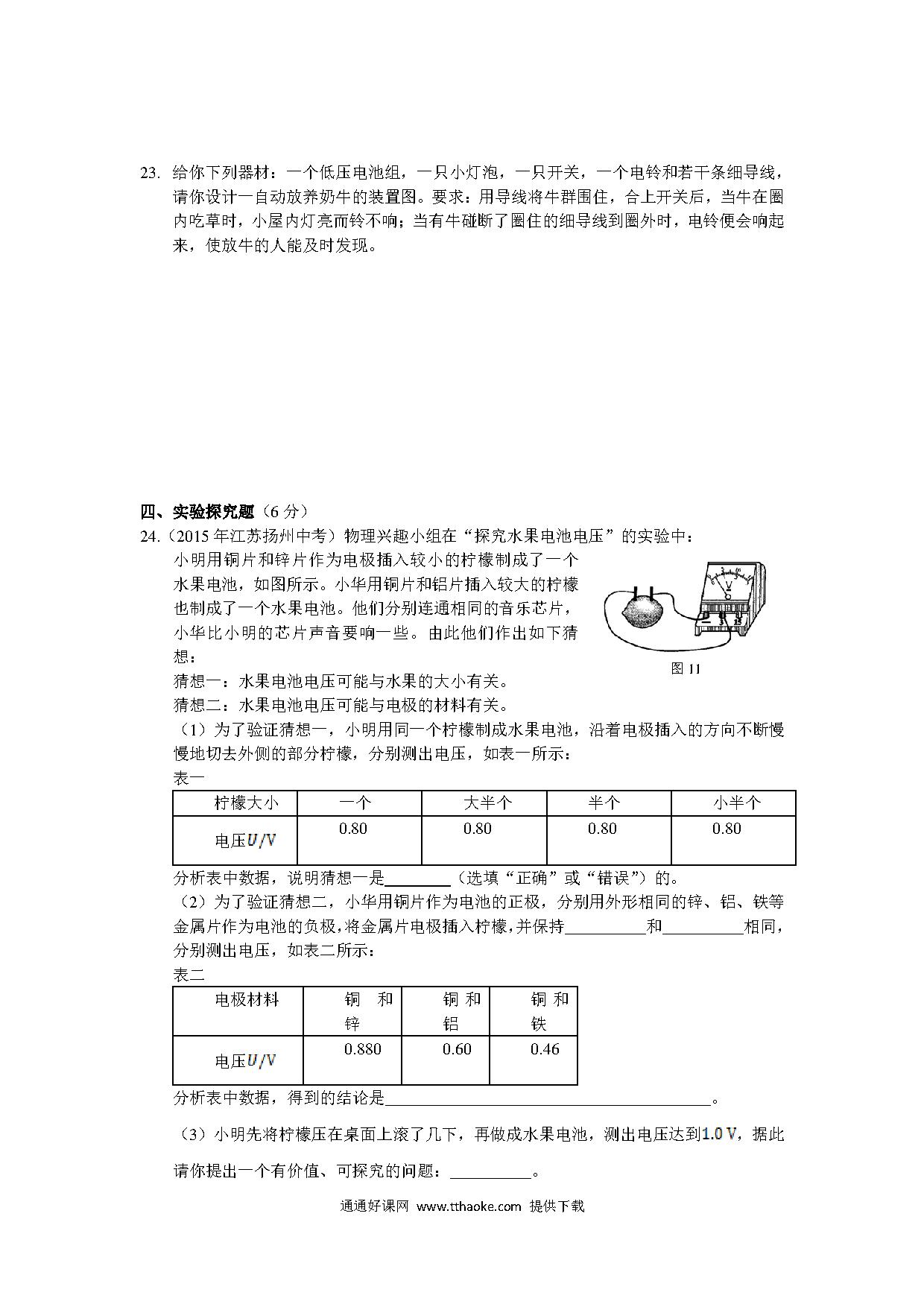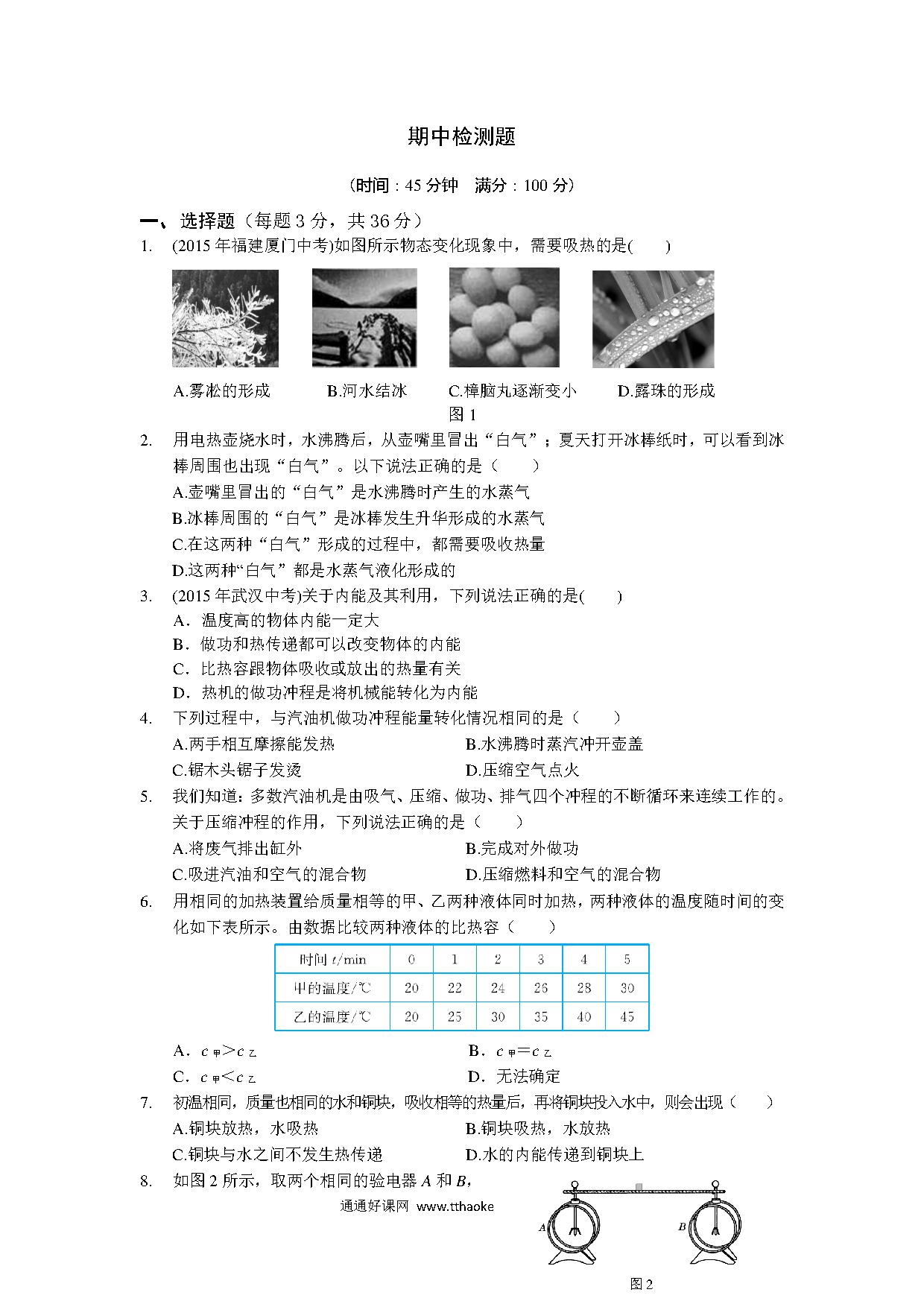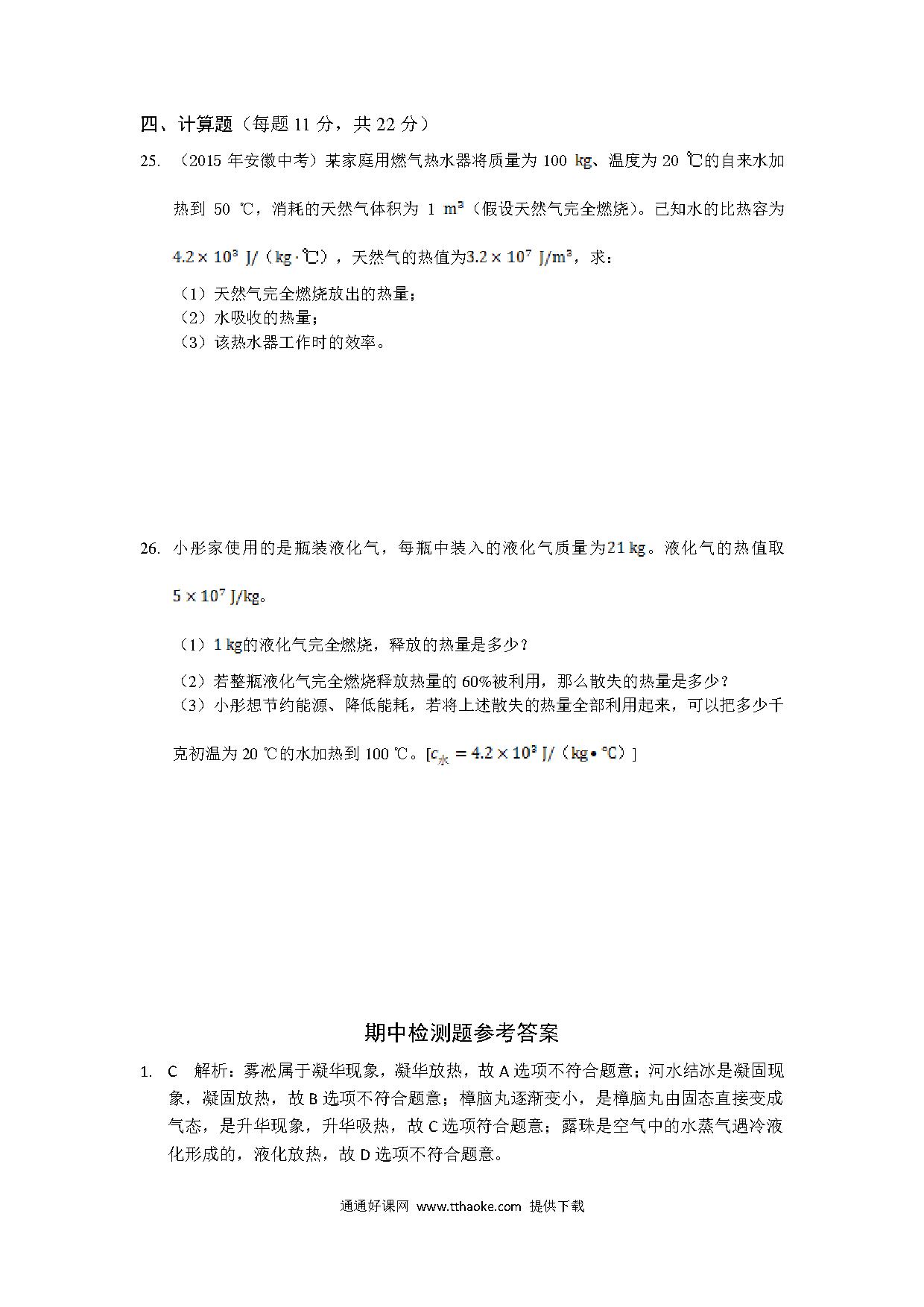 全解2015沪科版九年级物理上期中测试卷及答案解析.pdf