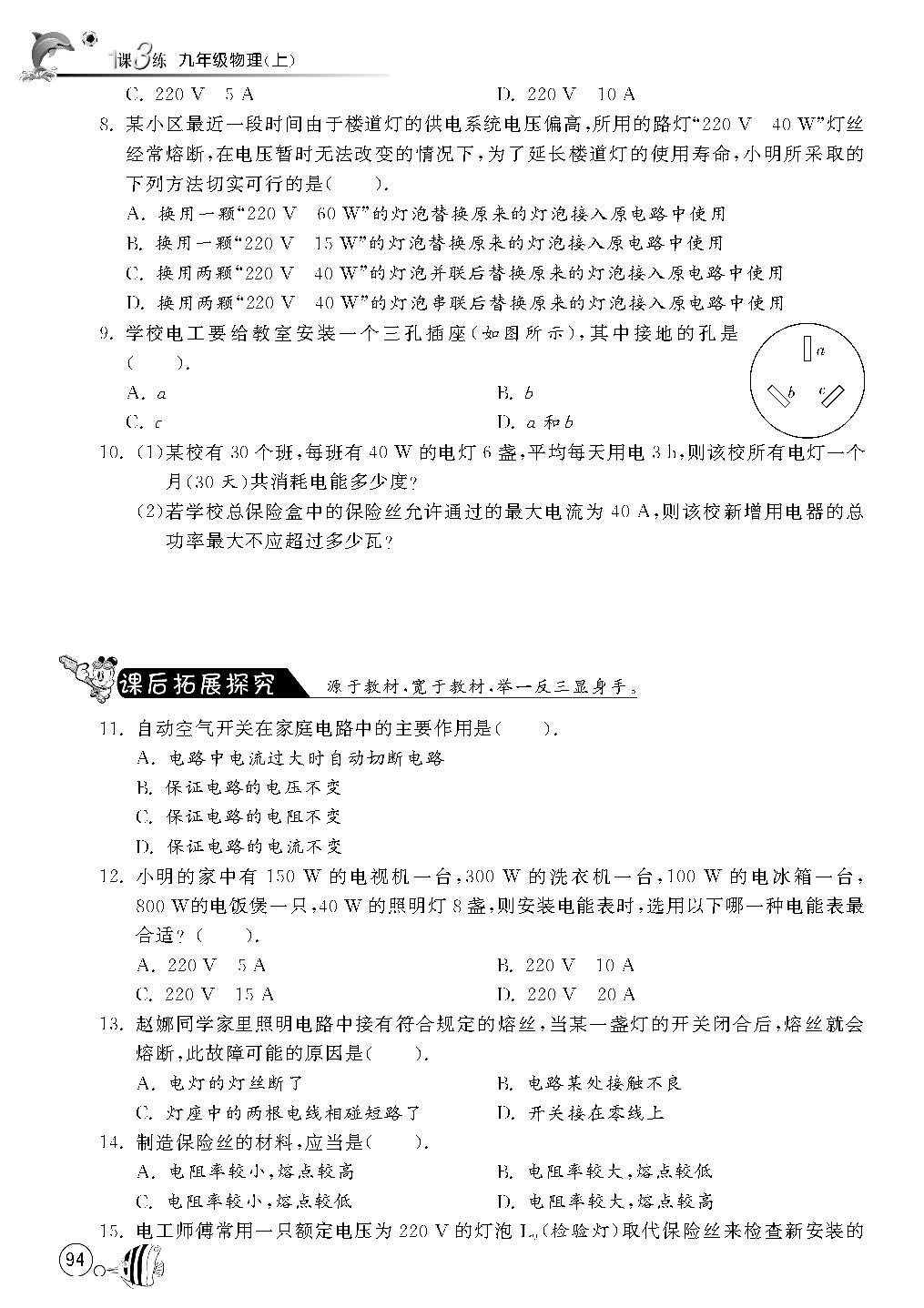 满洲里市2017-2018学年度上学期九年级物理期末试题及答案