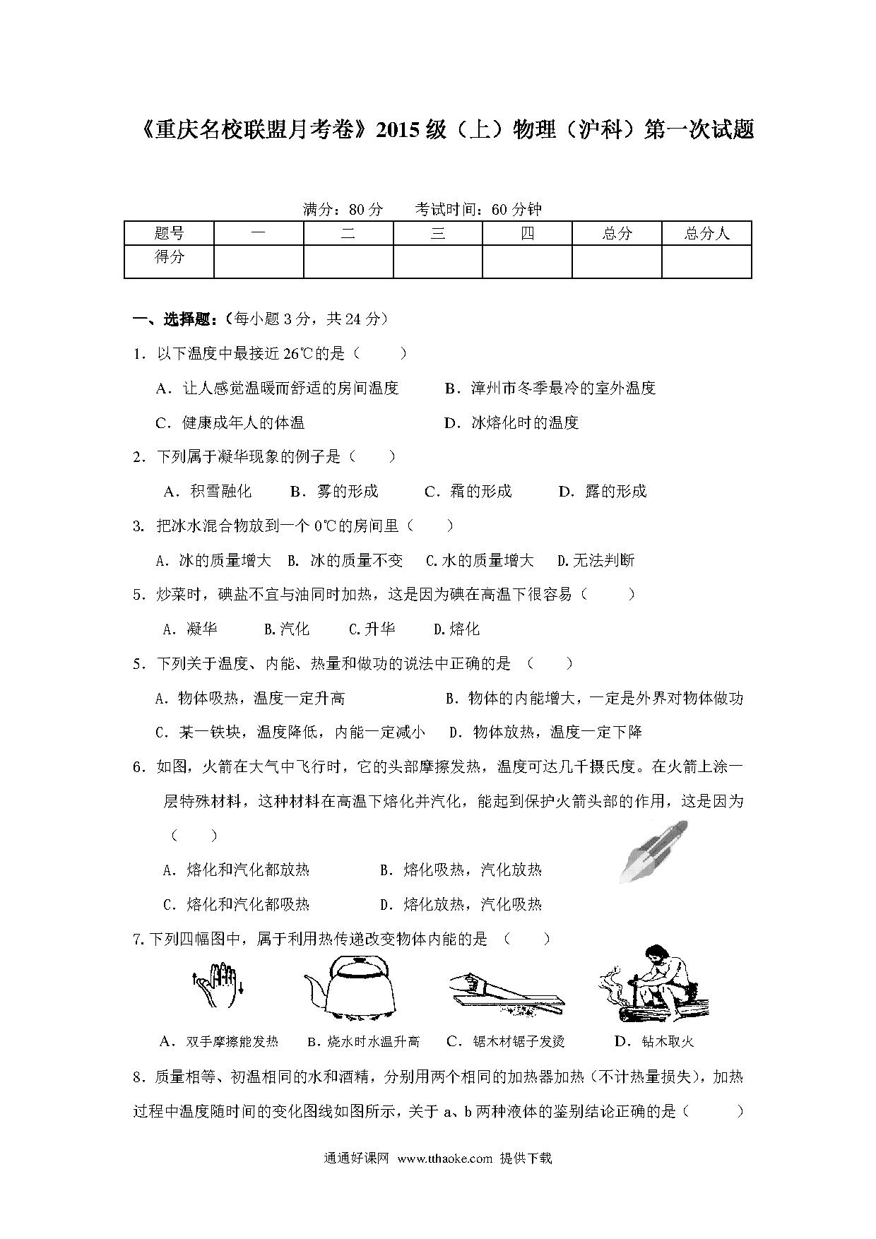 重庆名校联盟2015级沪科版九年级物理第一次月考卷.pdf