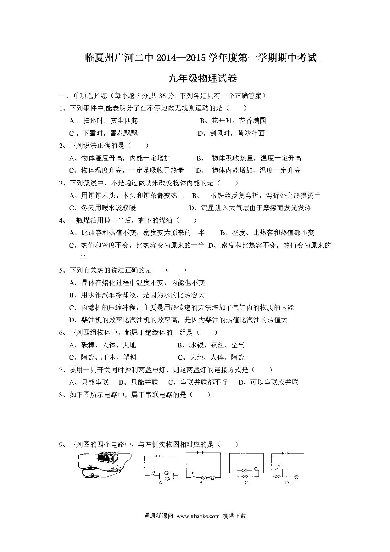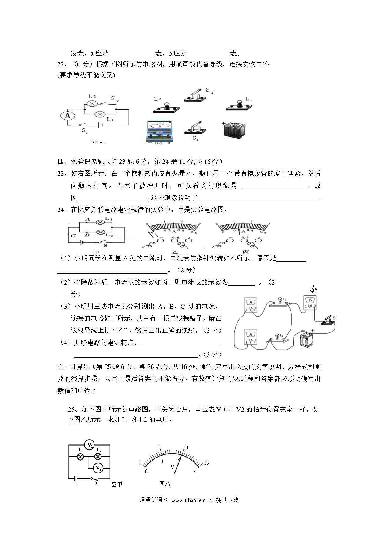 太原市2017-2018学年第一学期初三物理期末考试试卷及答案