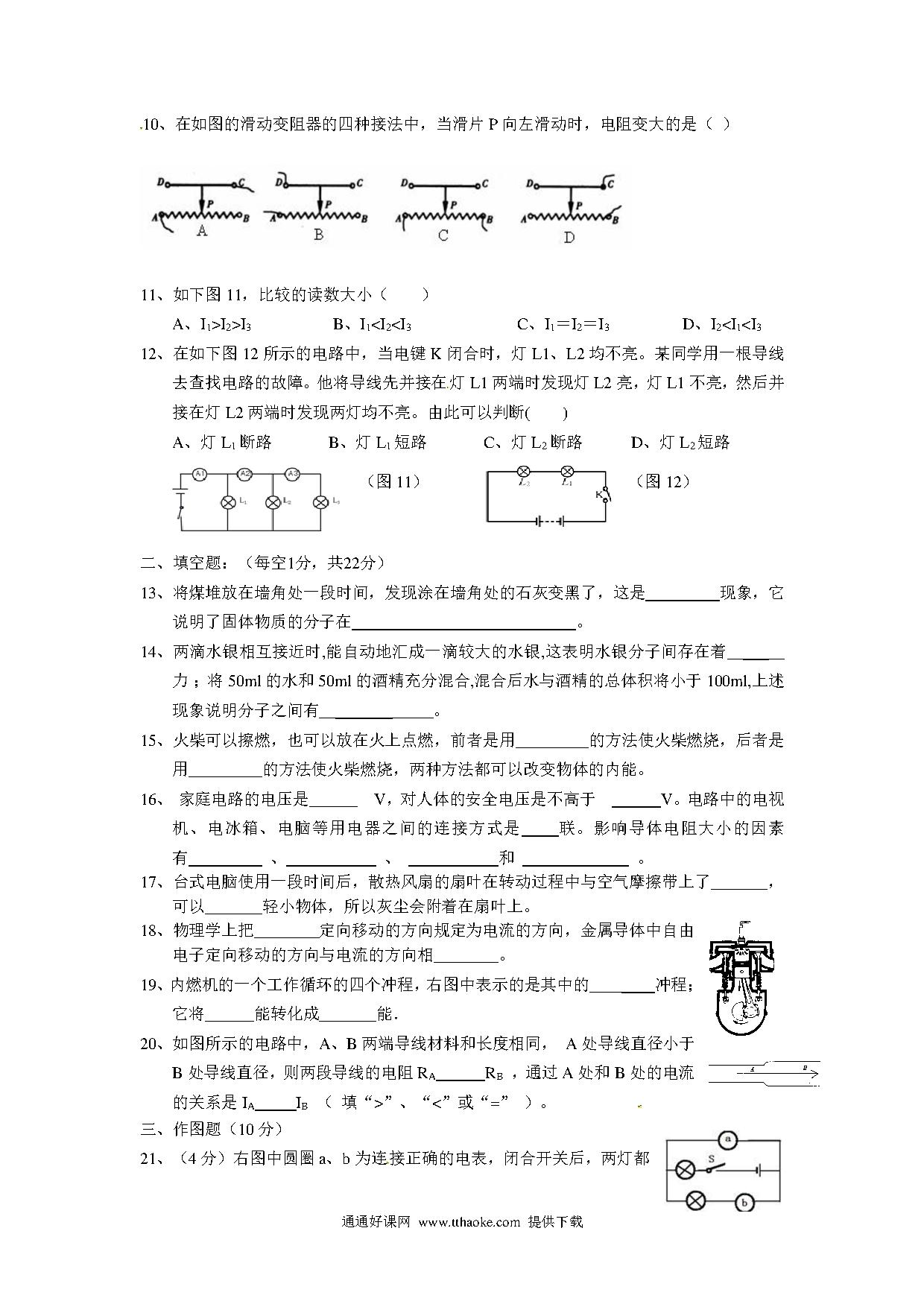 宣城市奋飞学校2017~2018学年第一学期九年级物理12月月考试卷