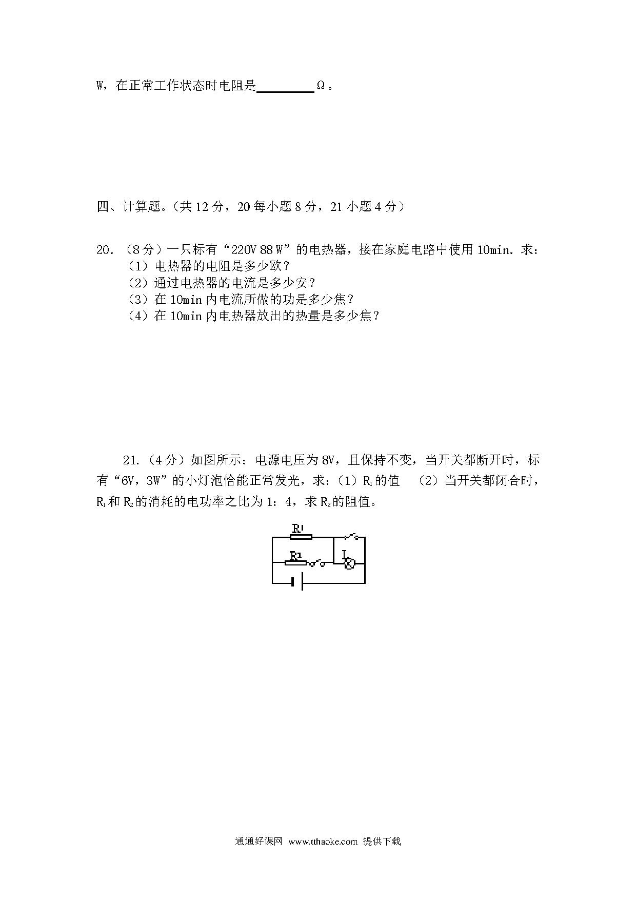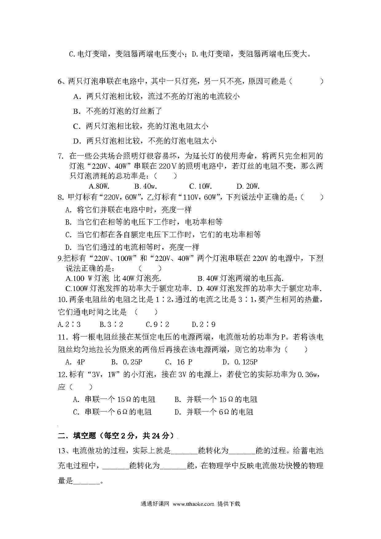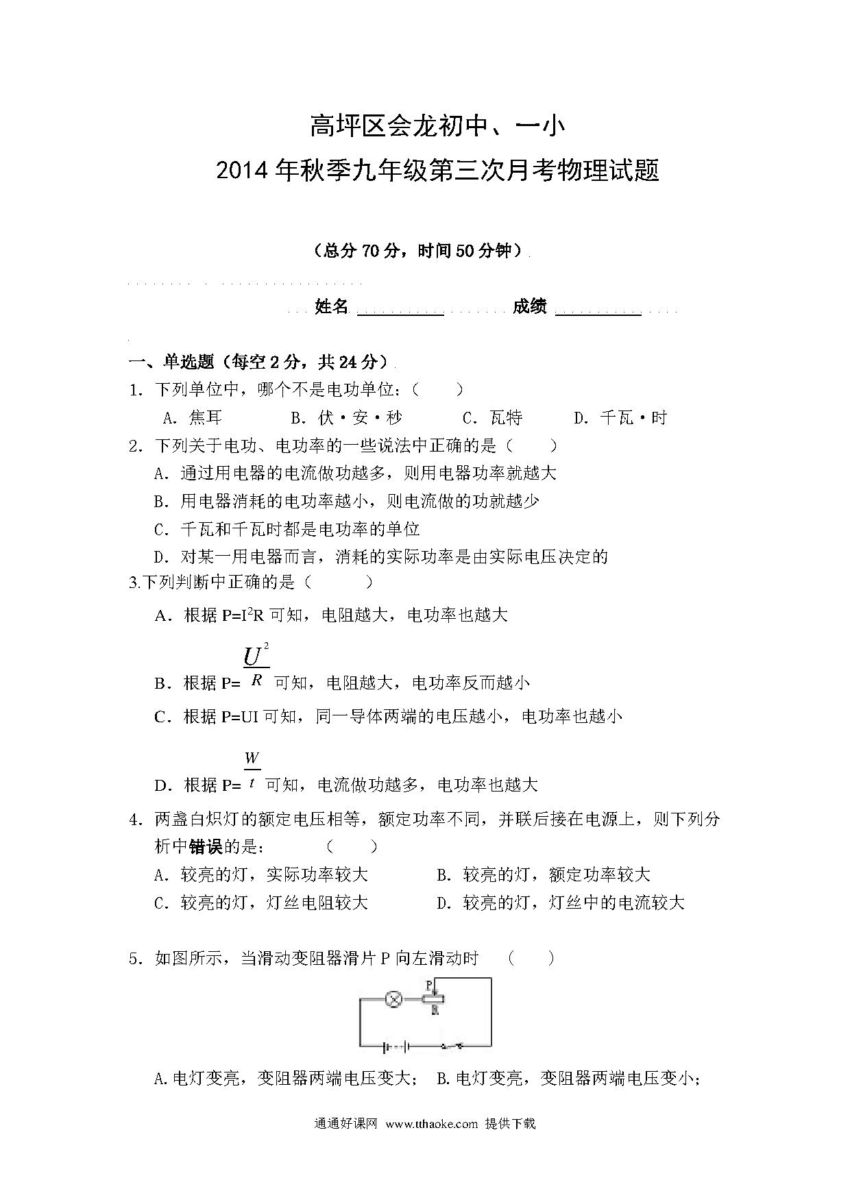 高坪区2014年秋季九年级物理第三次月考试卷.pdf