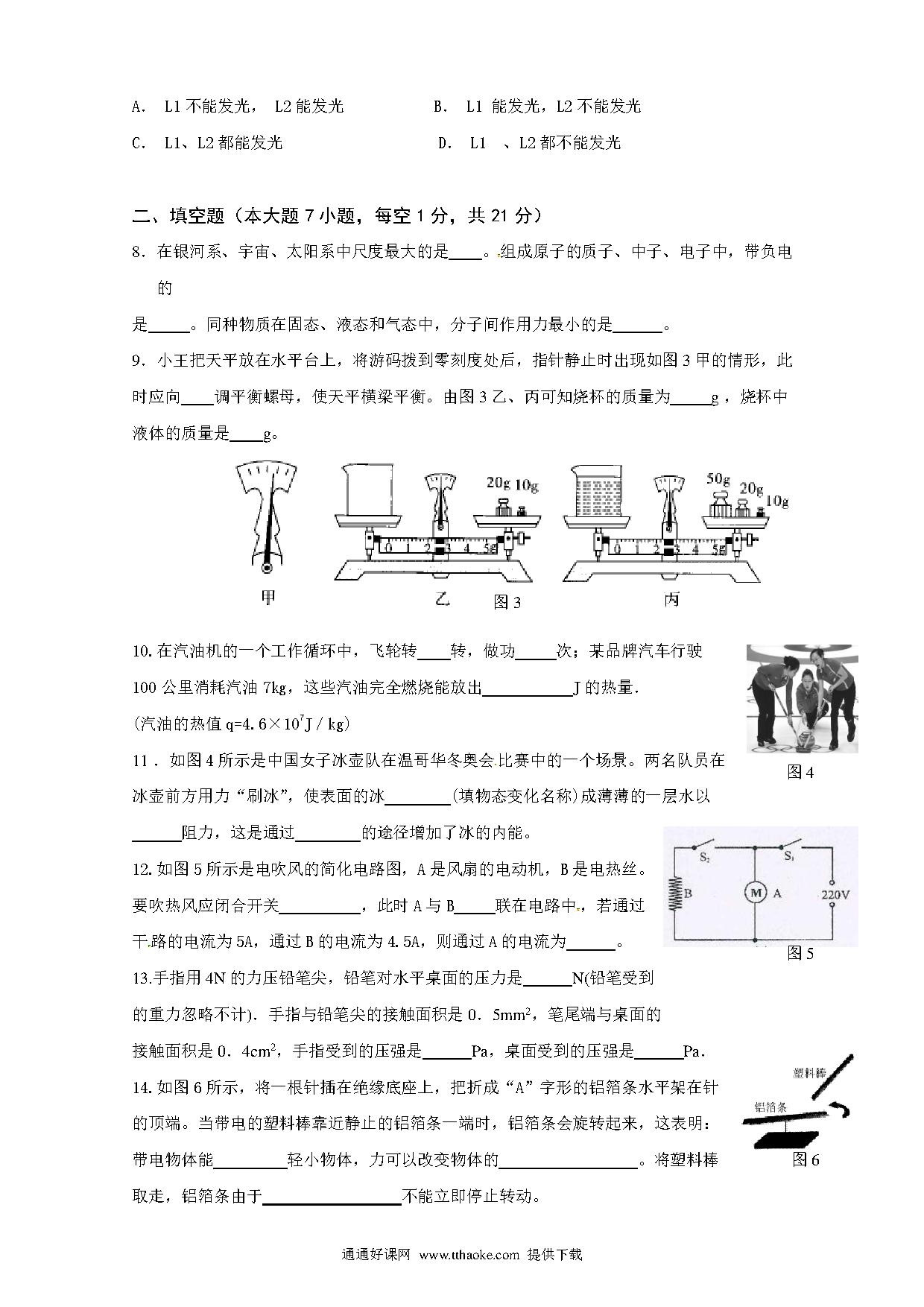 太原市2017-2018学年第一学期初三物理期末考试试卷及答案