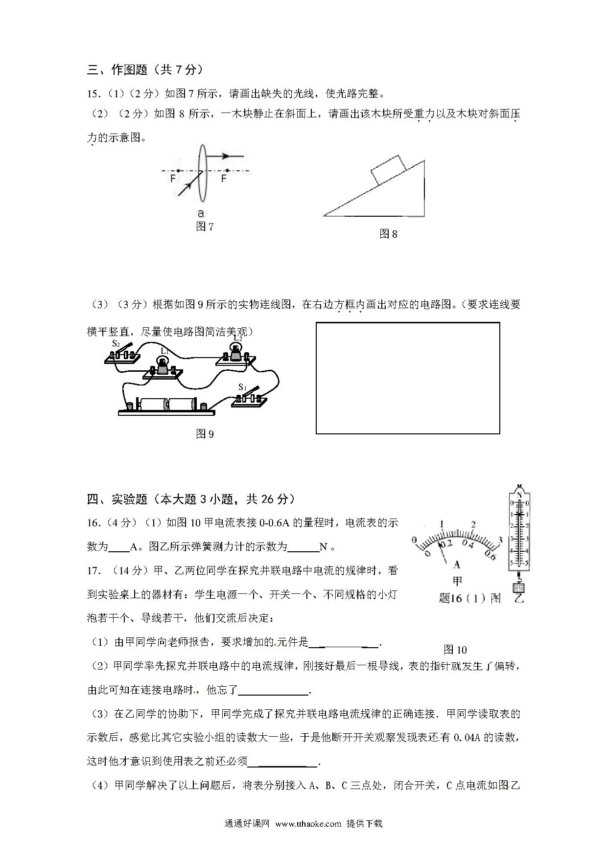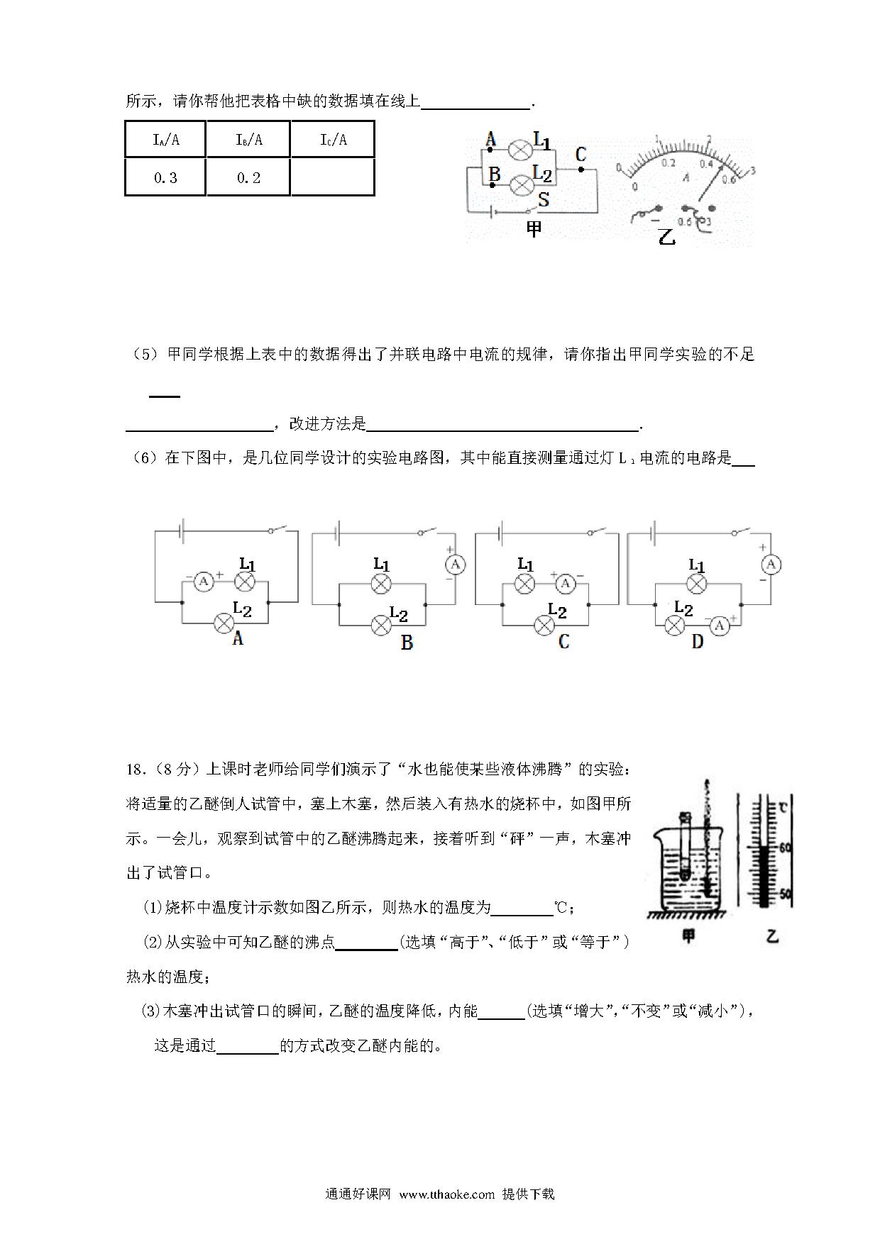 宣城市奋飞学校2017~2018学年第一学期九年级物理12月月考试卷