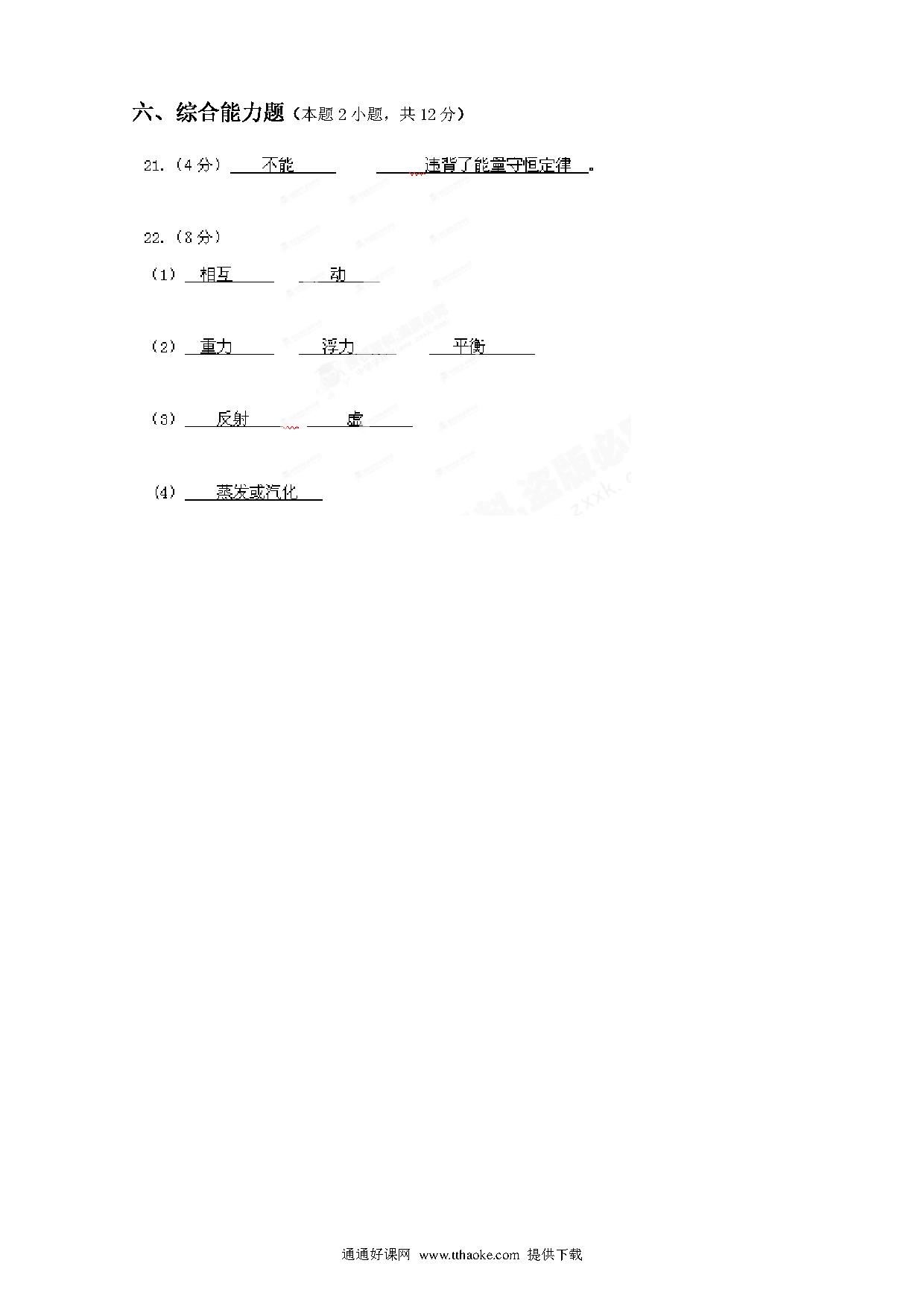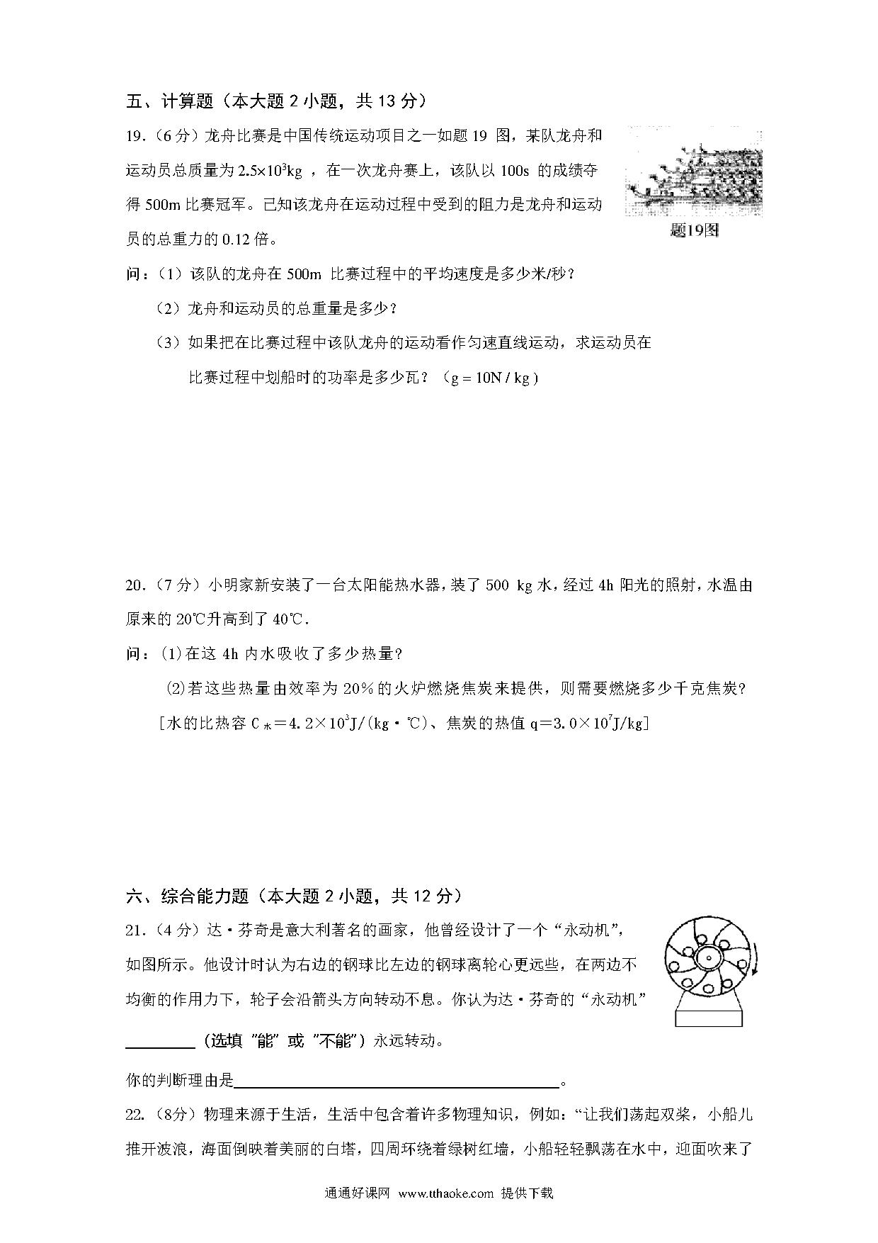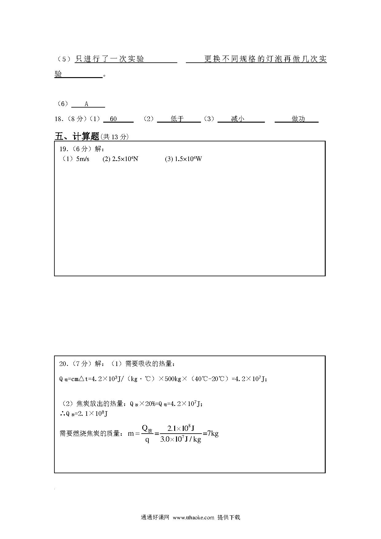 满洲里市2017-2018学年度上学期九年级物理期末试题及答案
