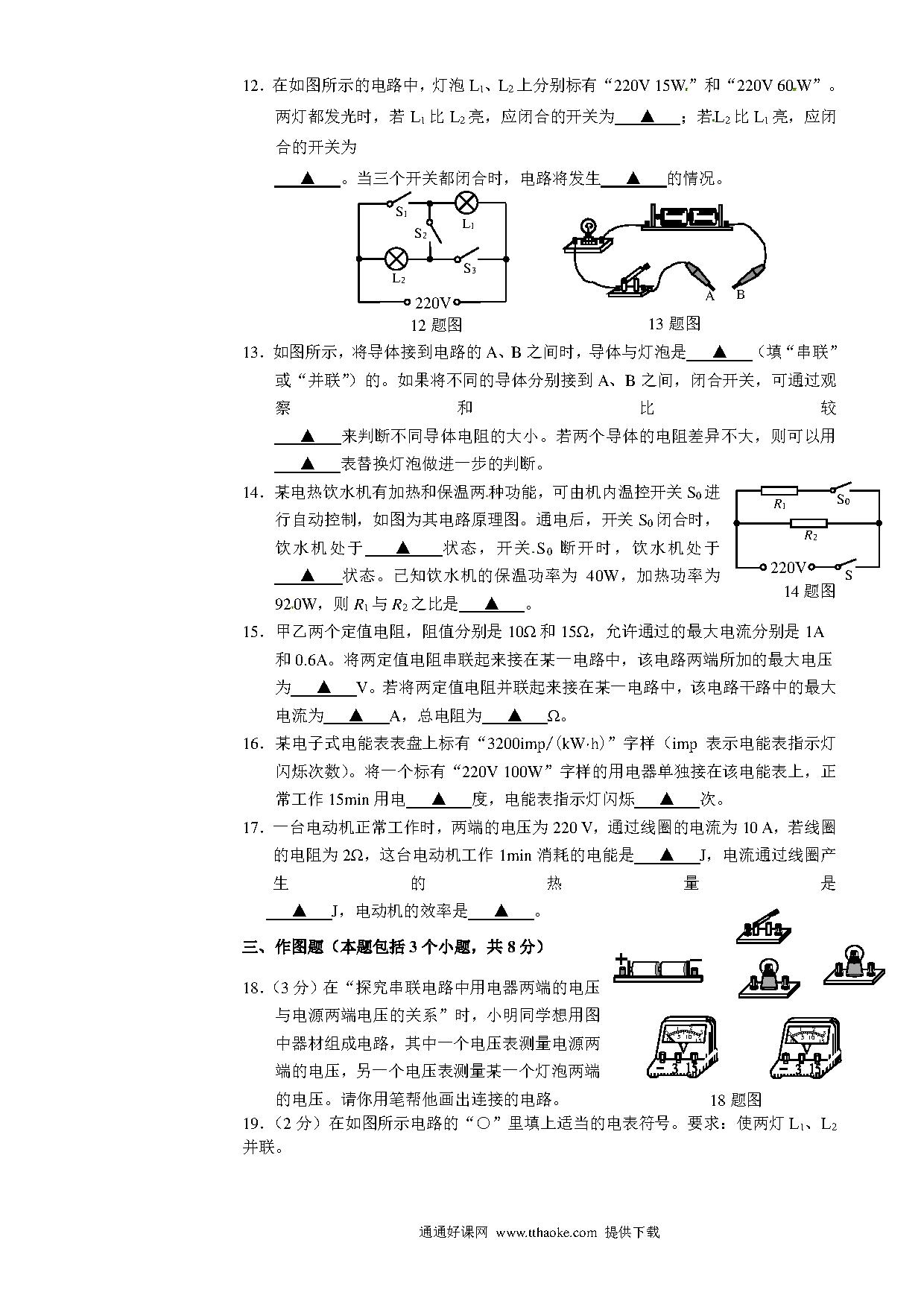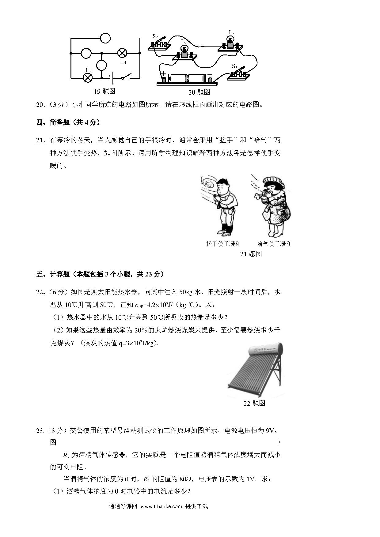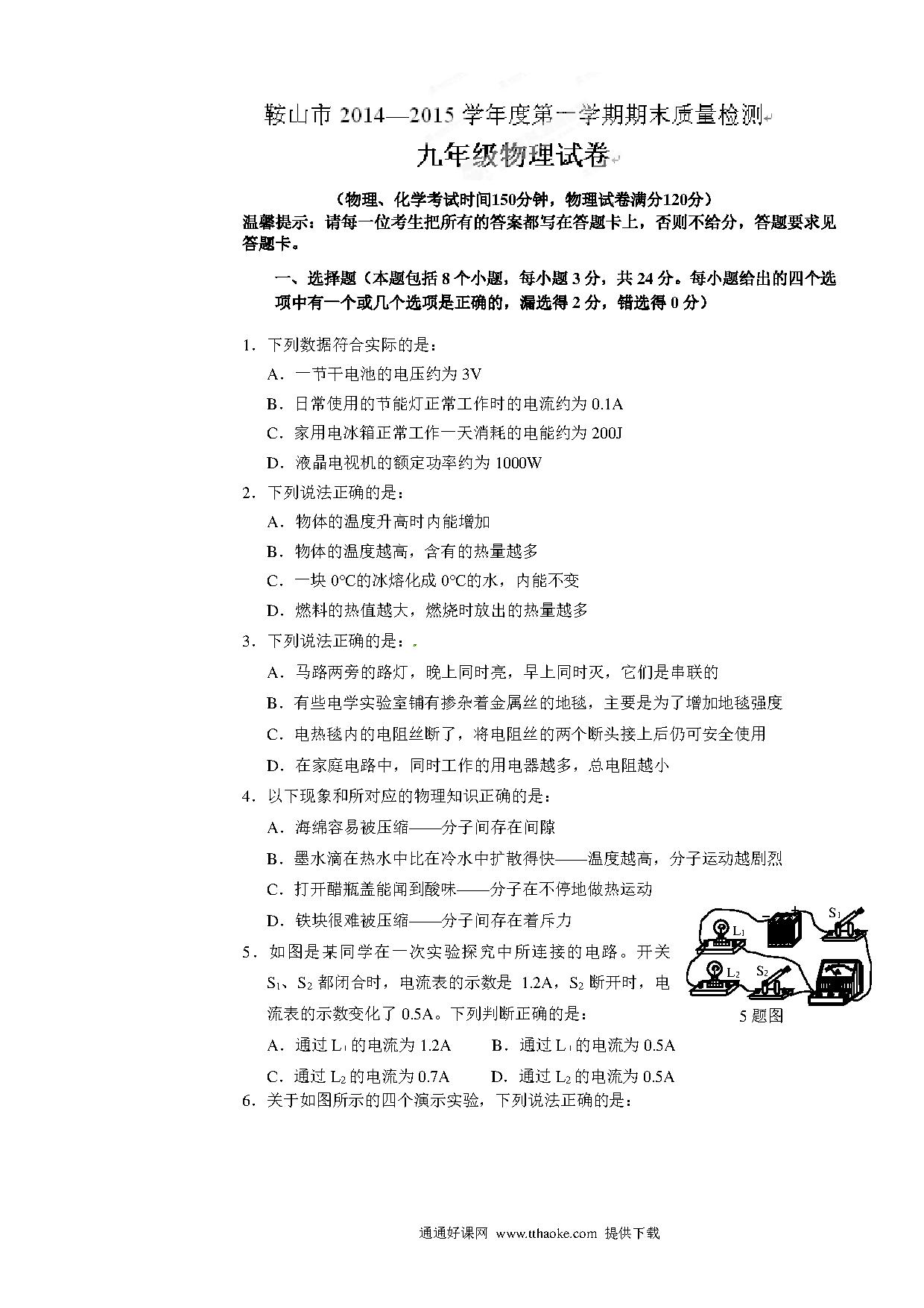 鞍山市2014年第一学期九年级物理期末试卷及答案.pdf
